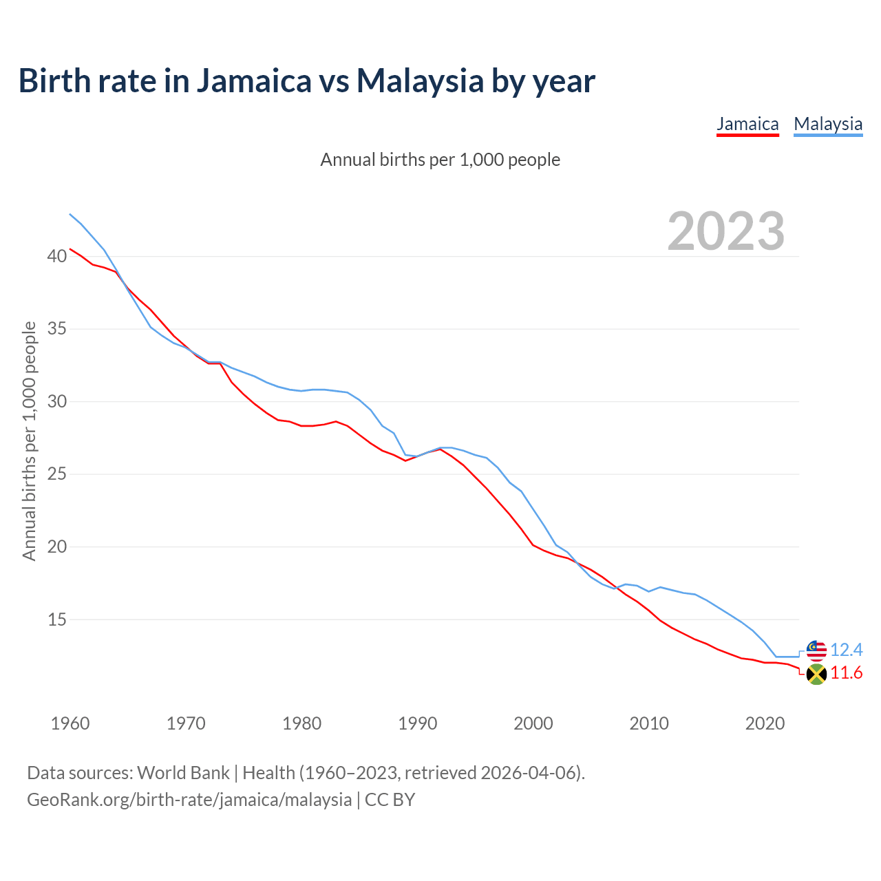 GeoRank.org/birth-rate/jamaica/malaysia | CC BY