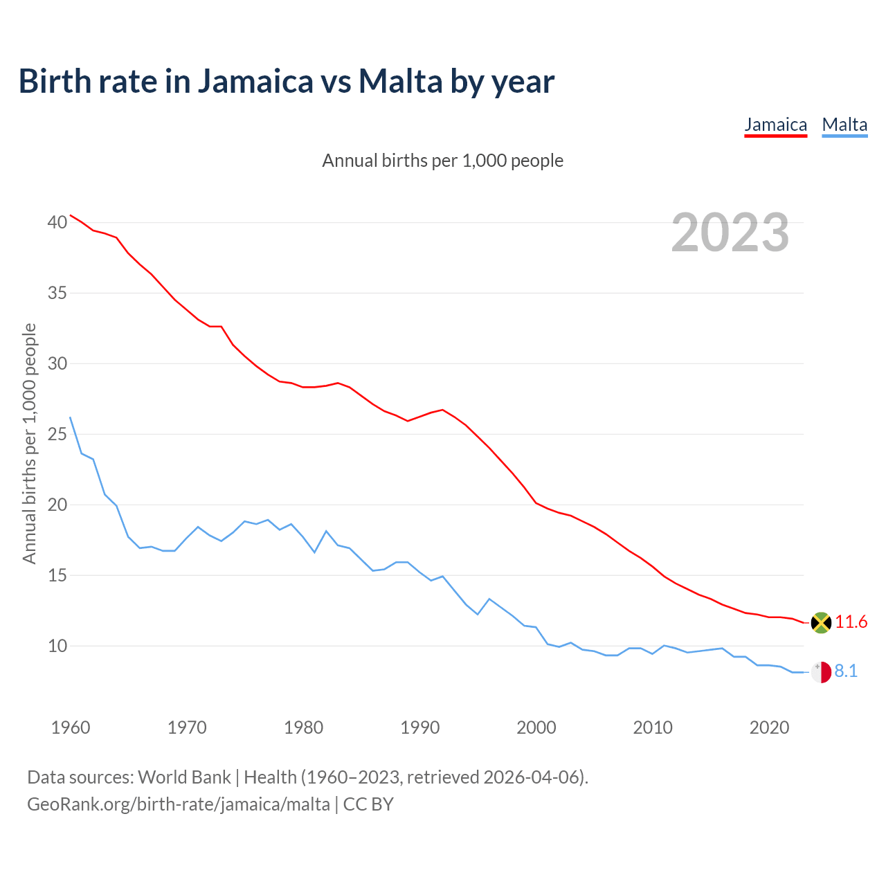 GeoRank.org/birth-rate/jamaica/malta | CC BY