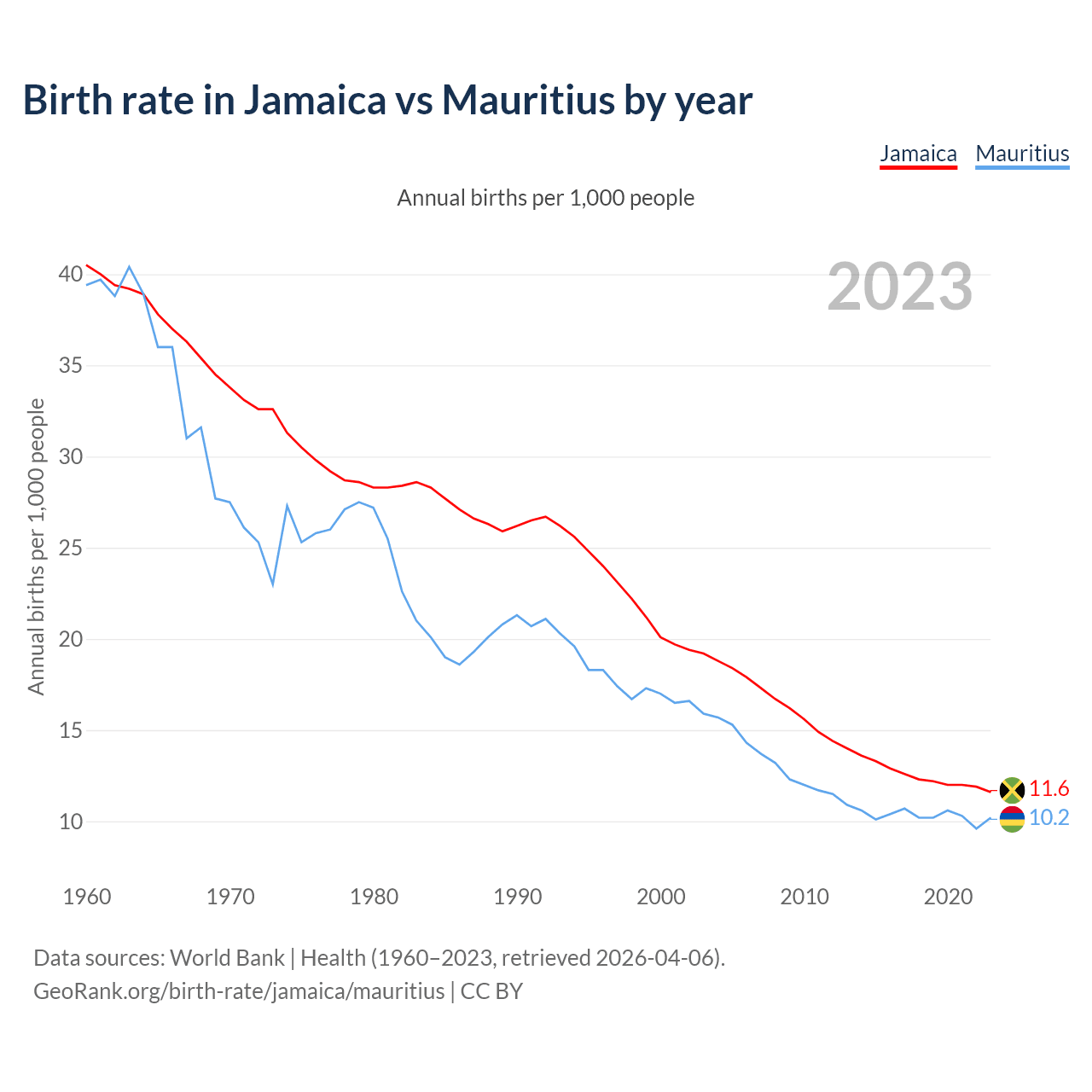 GeoRank.org/birth-rate/jamaica/mauritius | CC BY