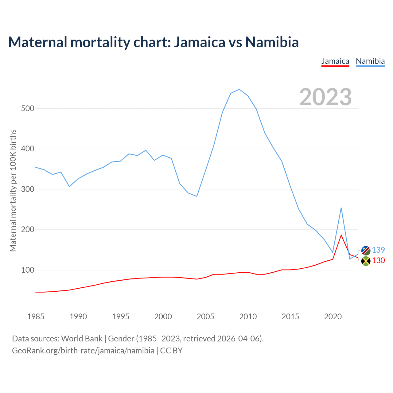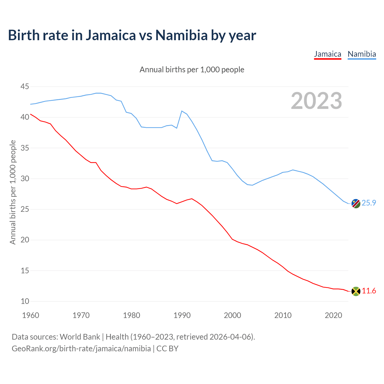 GeoRank.org/birth-rate/jamaica/namibia | CC BY