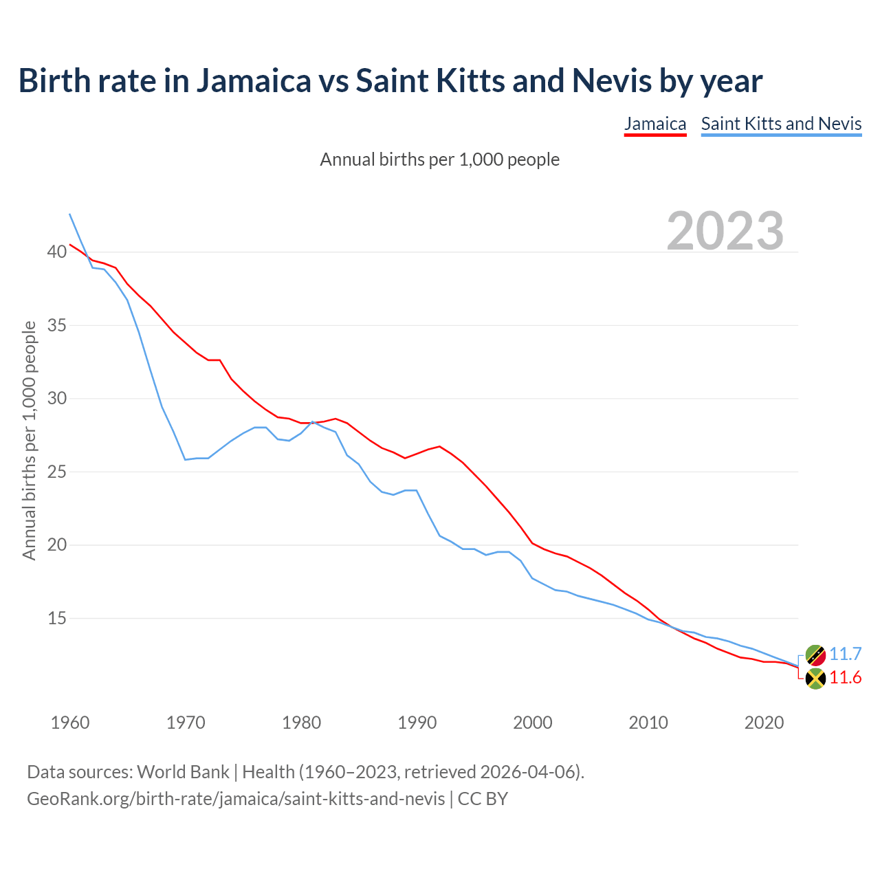 GeoRank.org/birth-rate/jamaica/saint-kitts-and-nevis | CC BY