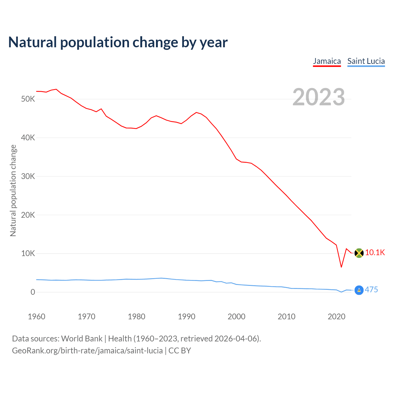 GeoRank.org/birth-rate/jamaica/saint-lucia | CC BY
