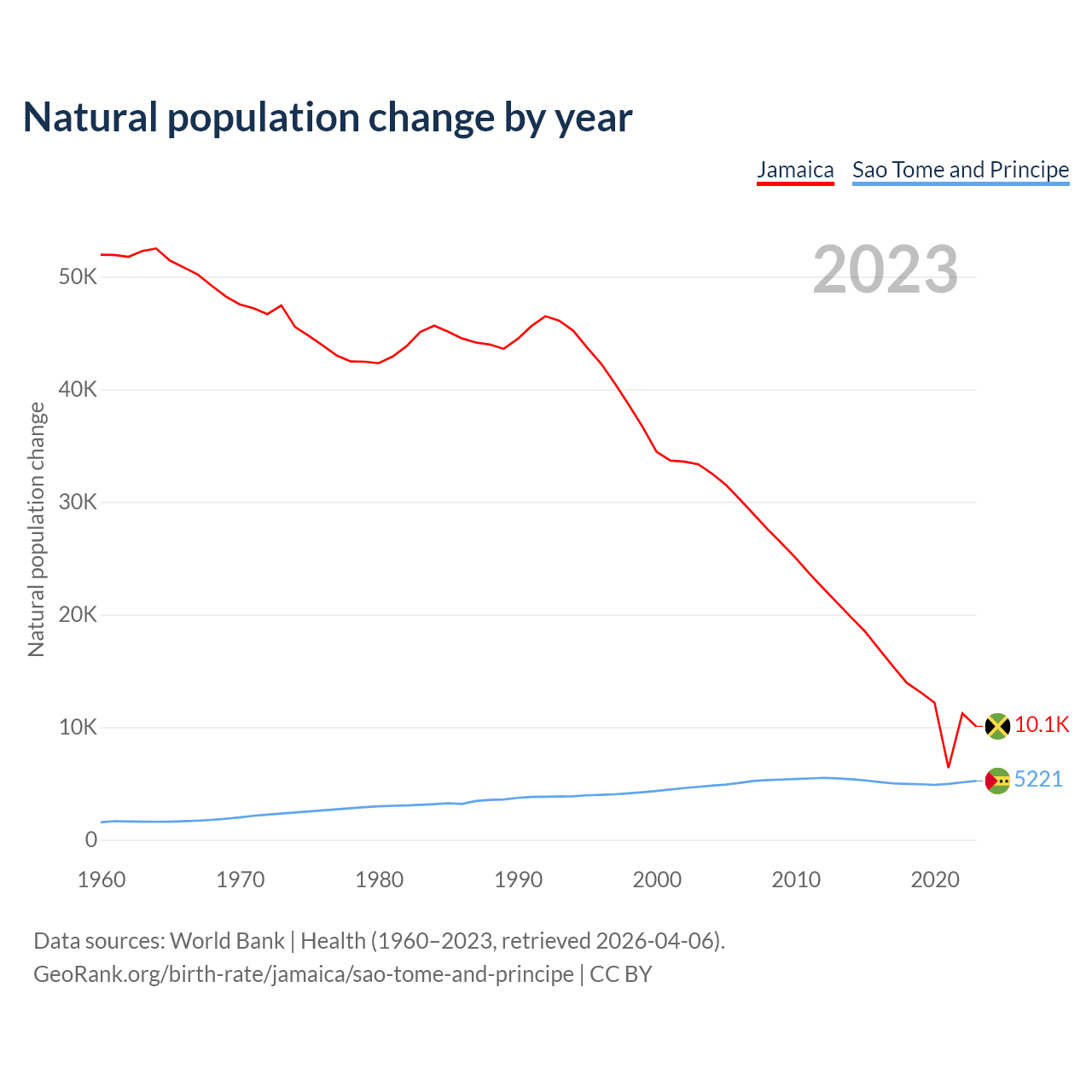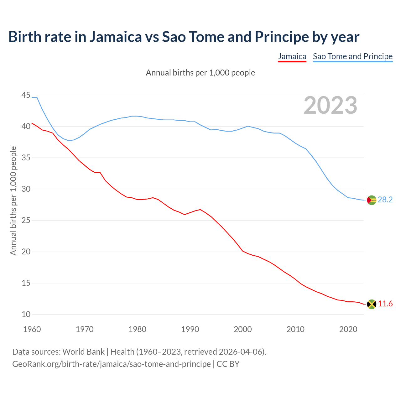 GeoRank.org/birth-rate/jamaica/sao-tome-and-principe | CC BY