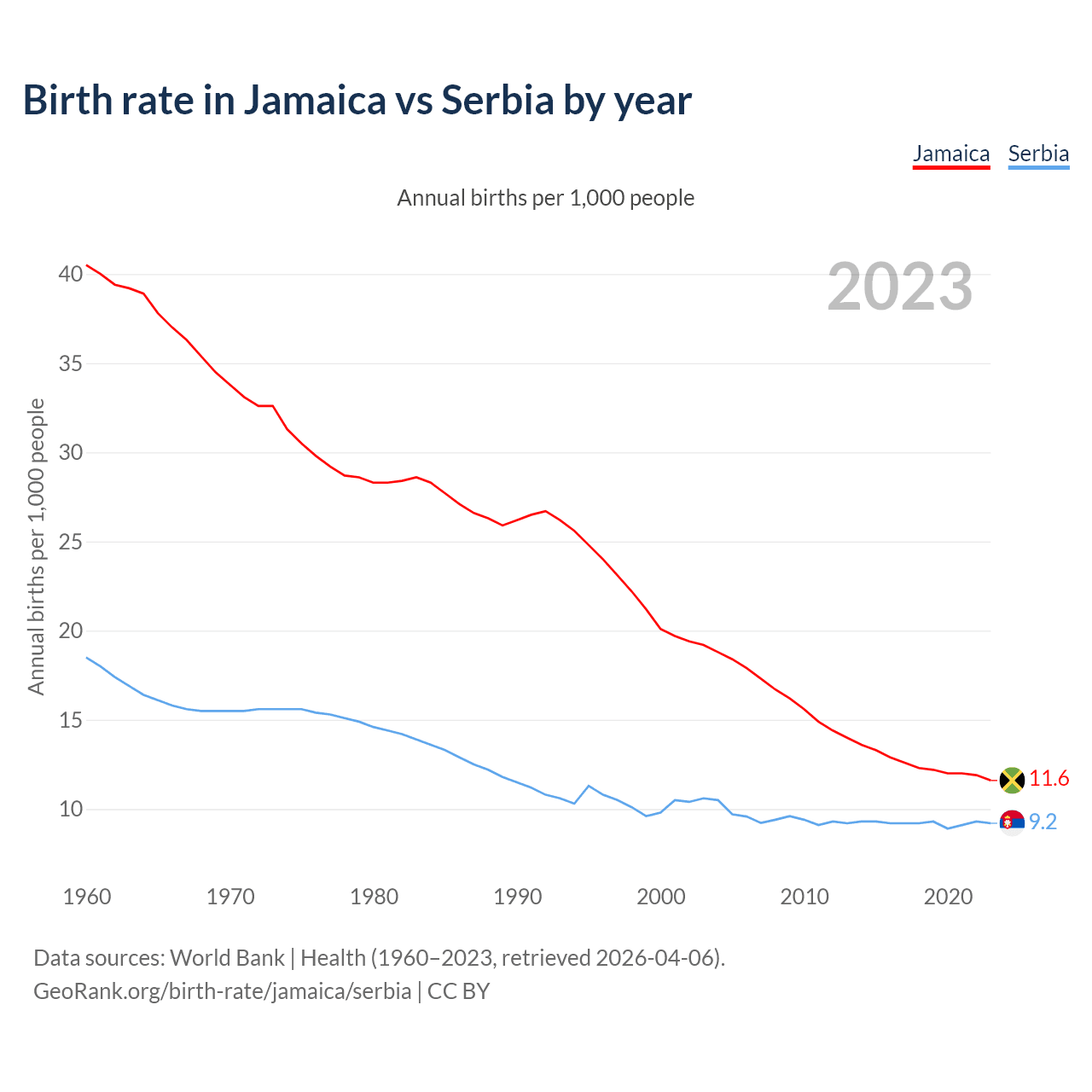 GeoRank.org/birth-rate/jamaica/serbia | CC BY