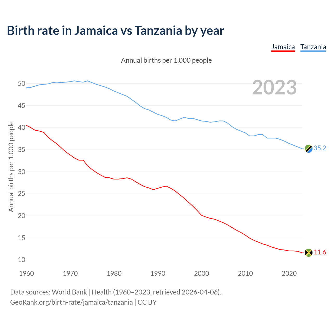 GeoRank.org/birth-rate/jamaica/tanzania | CC BY