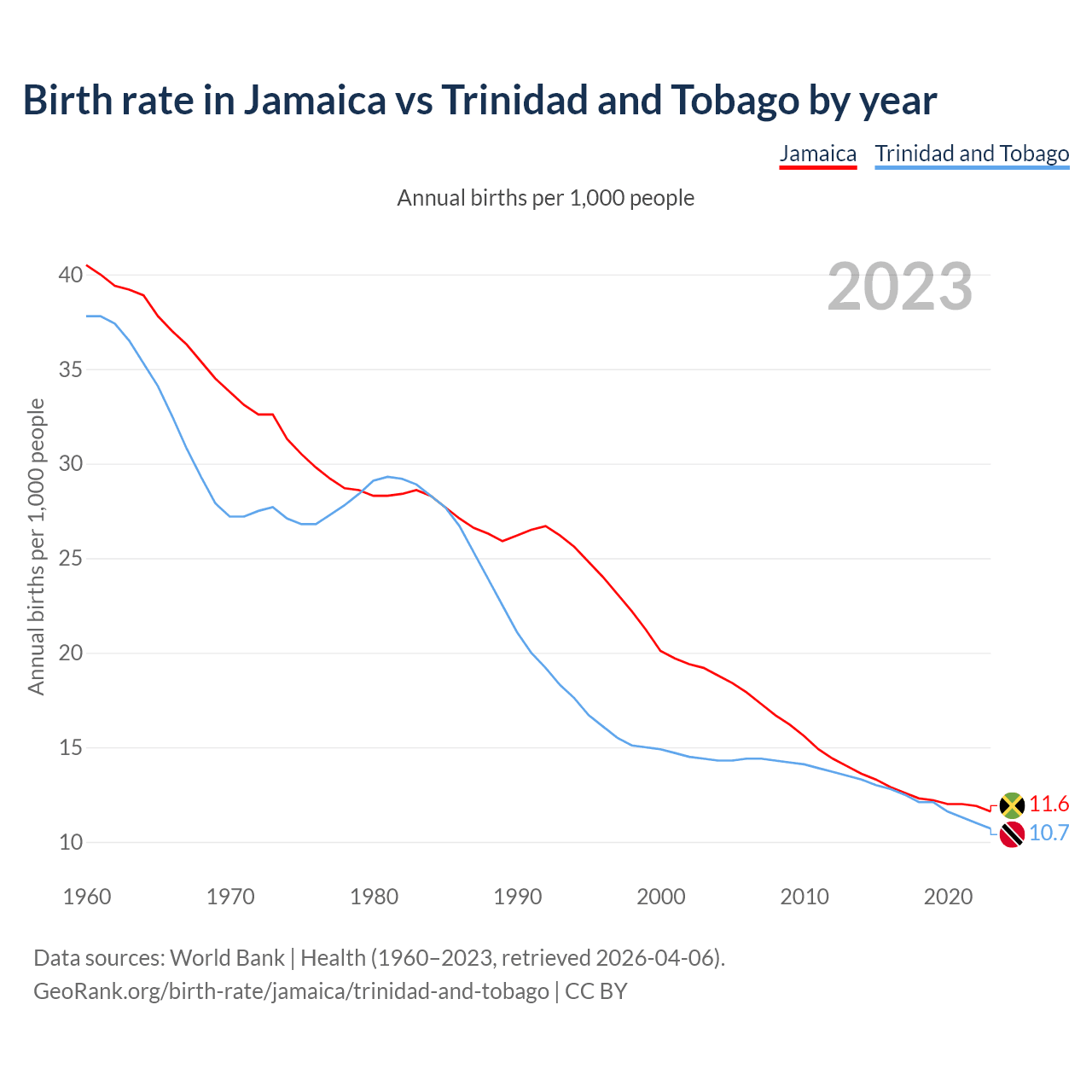 GeoRank.org/birth-rate/jamaica/trinidad-and-tobago | CC BY