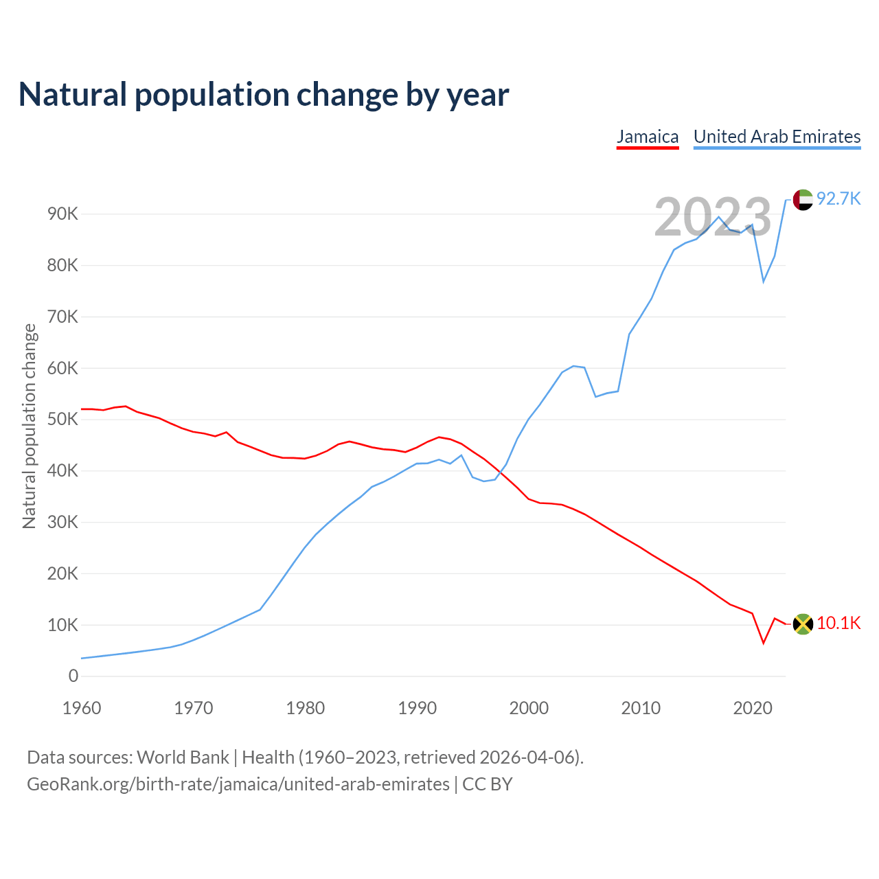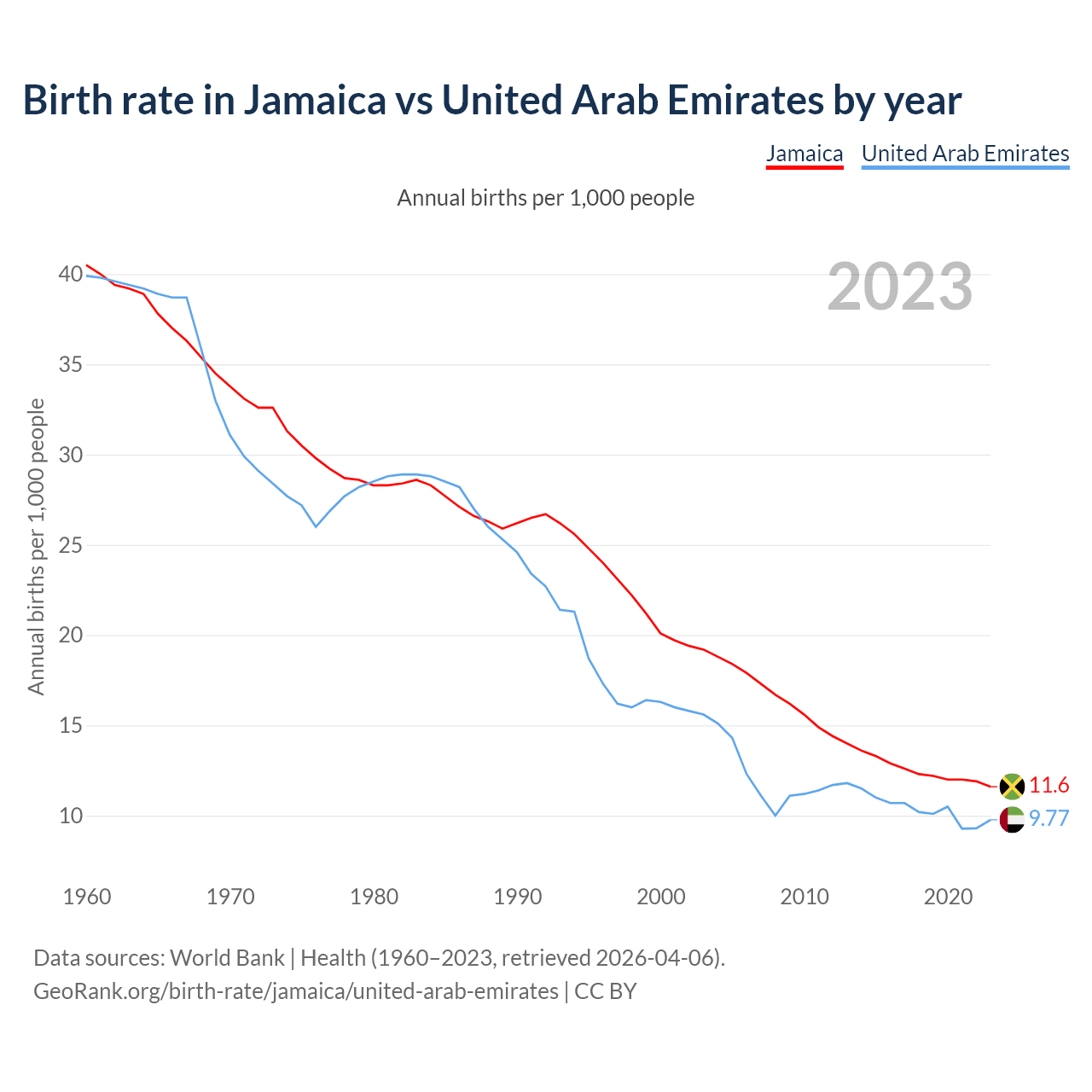GeoRank.org/birth-rate/jamaica/united-arab-emirates | CC BY