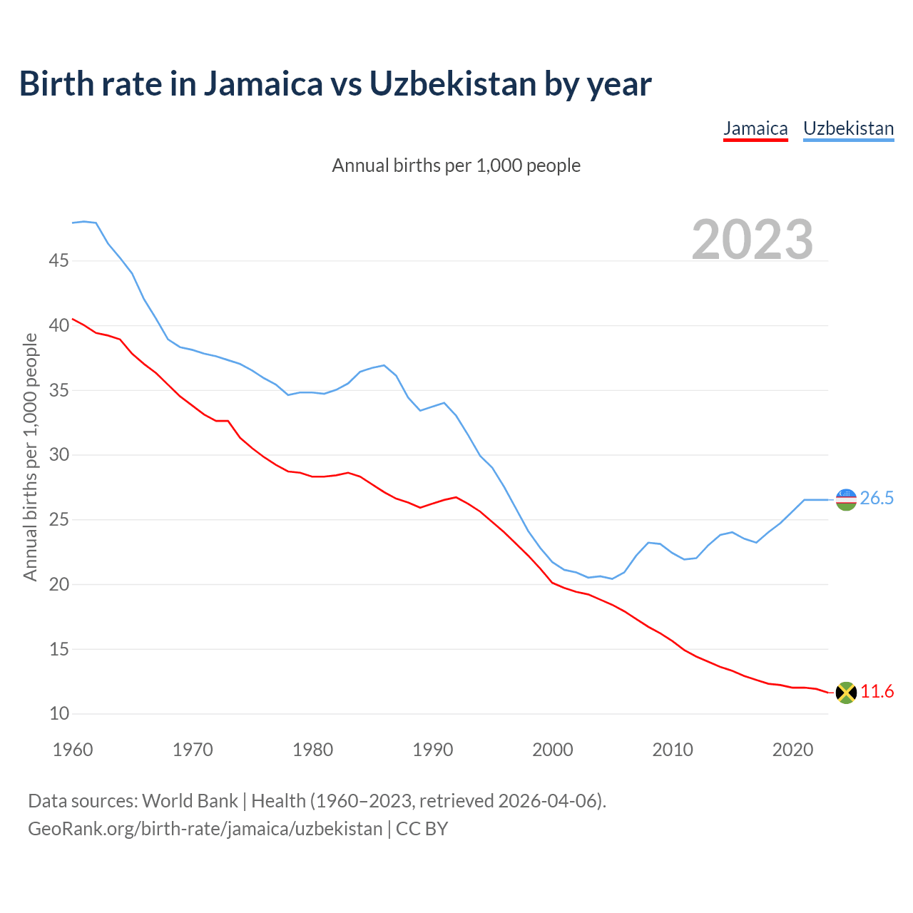 GeoRank.org/birth-rate/jamaica/uzbekistan | CC BY