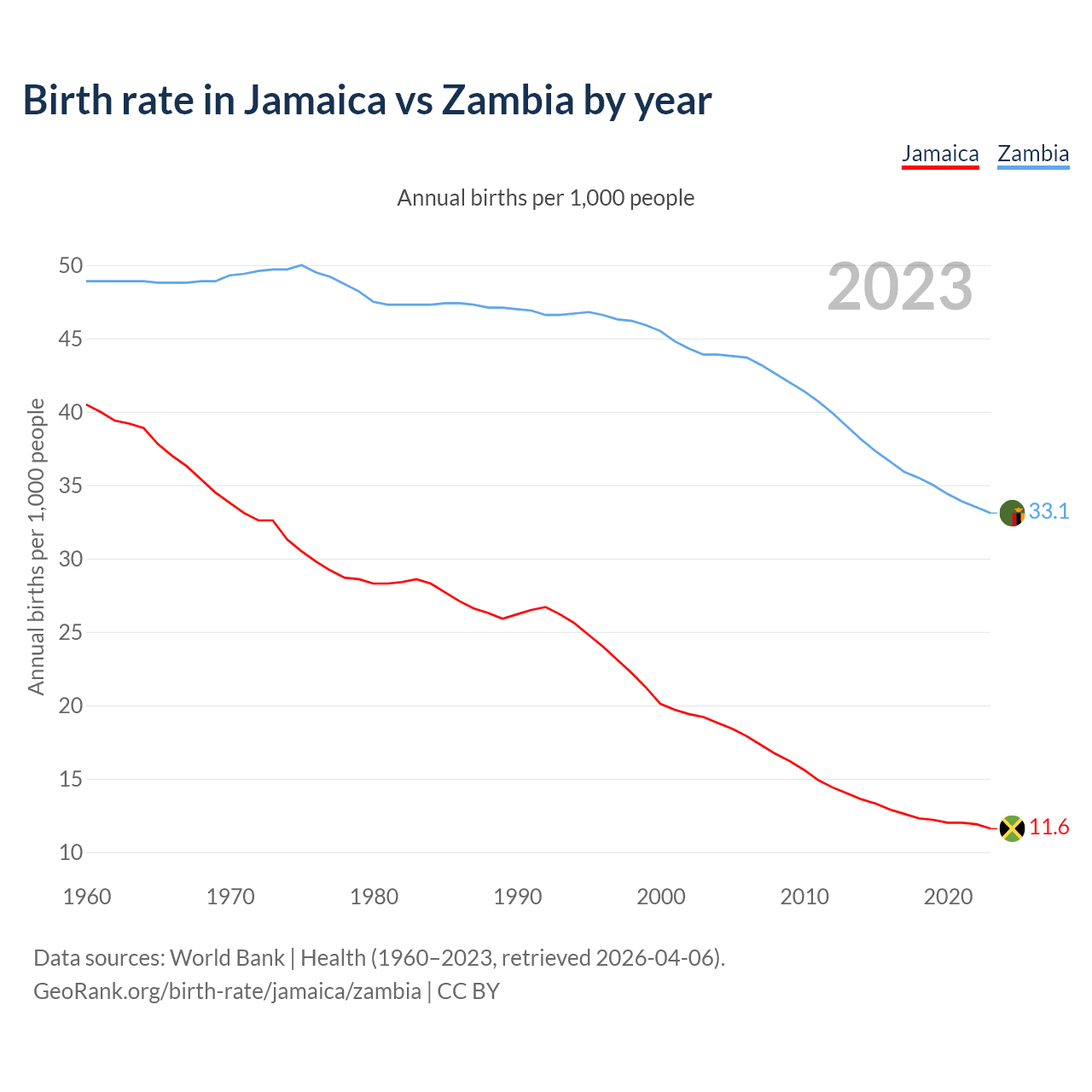 GeoRank.org/birth-rate/jamaica/zambia | CC BY