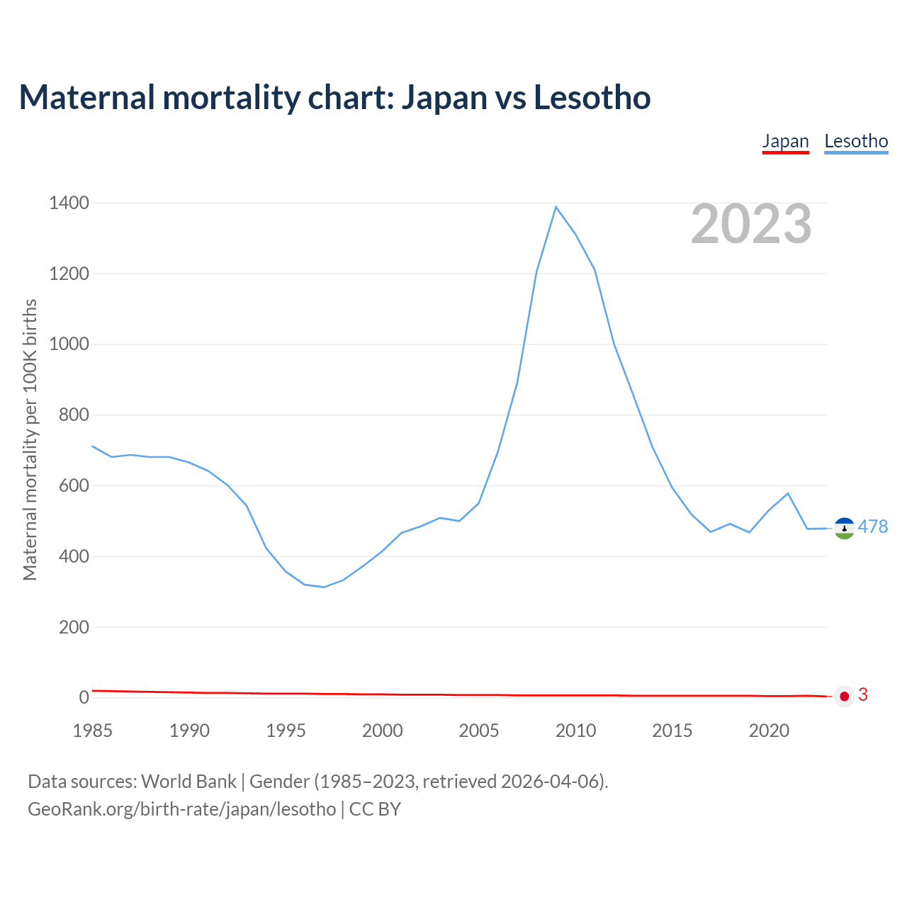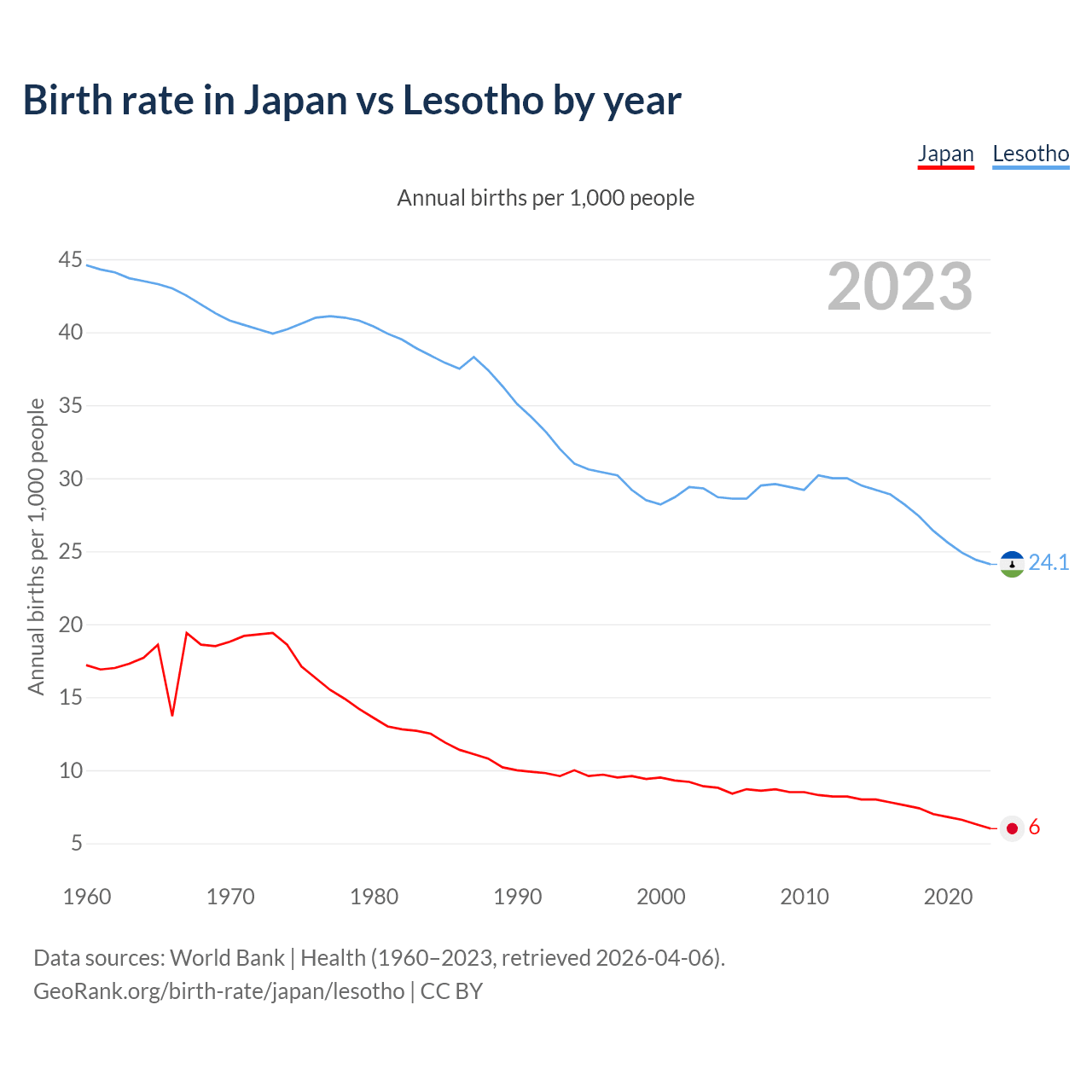 GeoRank.org/birth-rate/japan/lesotho | CC BY