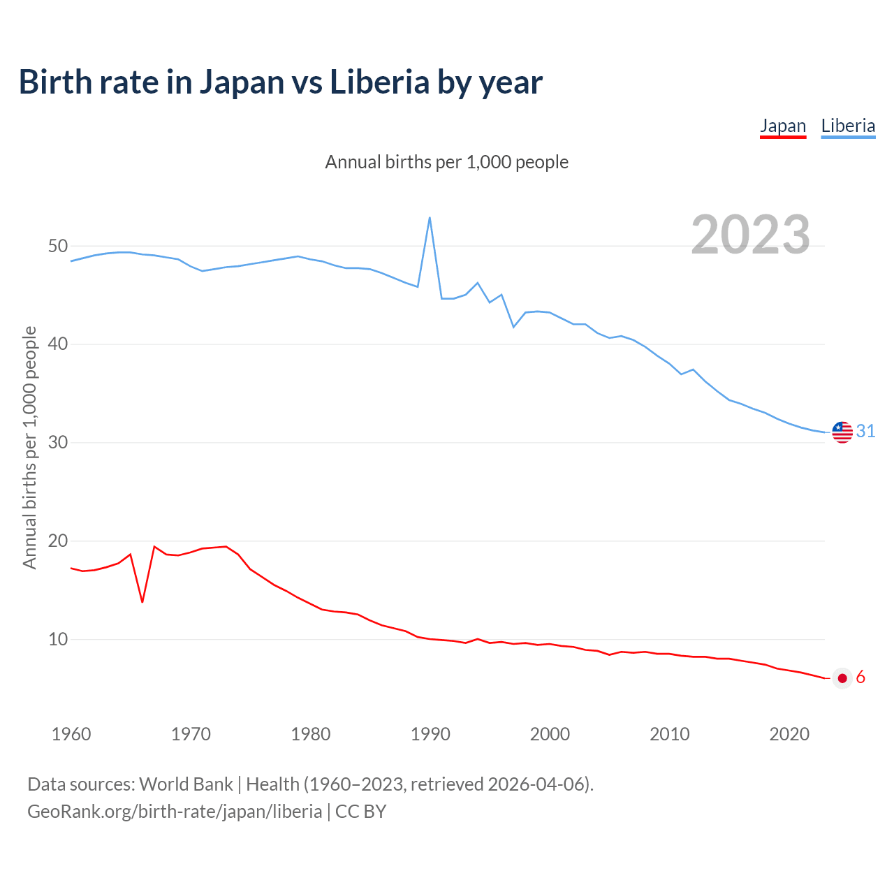 GeoRank.org/birth-rate/japan/liberia | CC BY