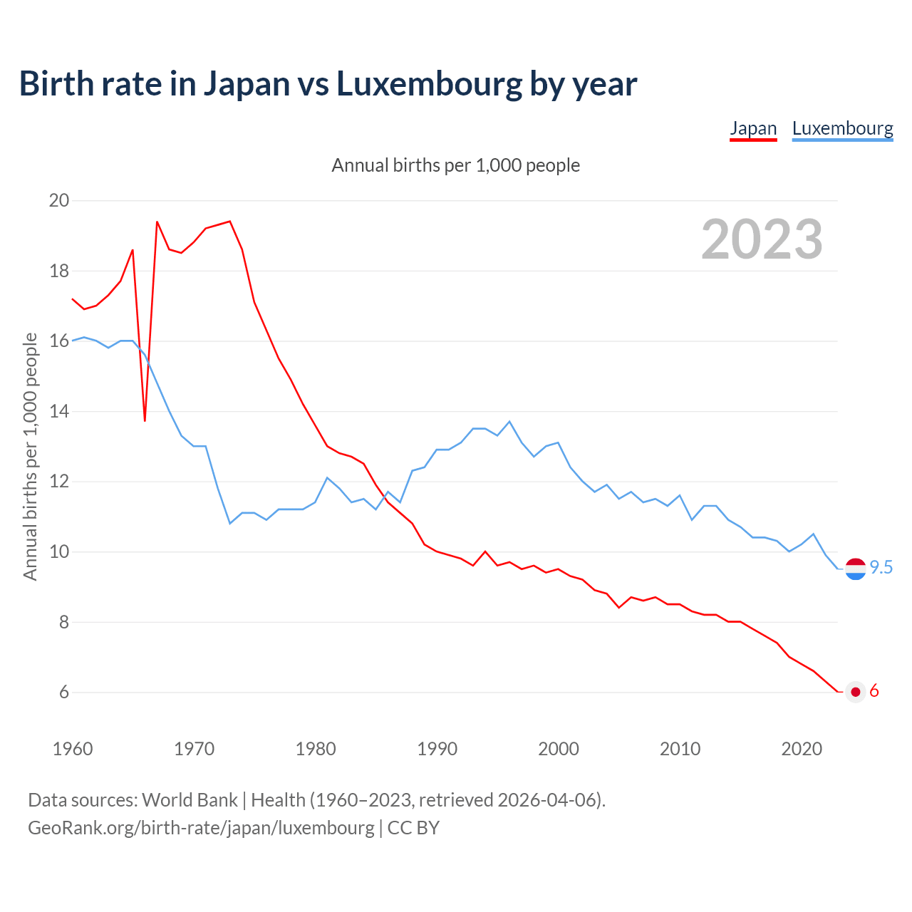 GeoRank.org/birth-rate/japan/luxembourg | CC BY