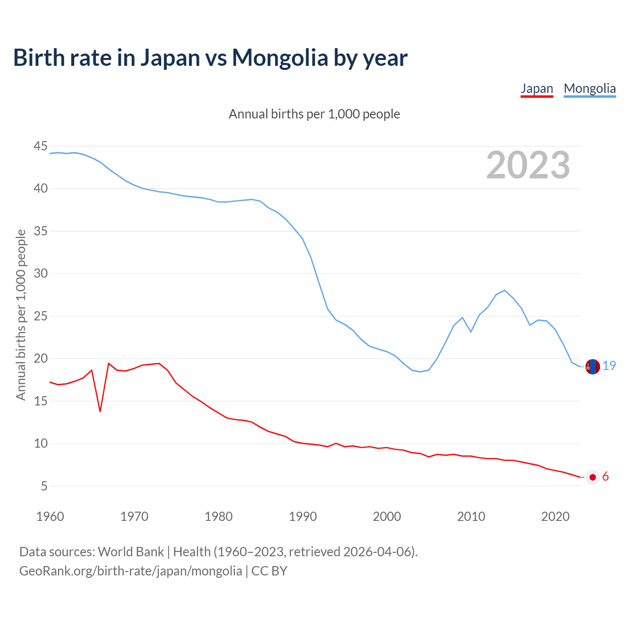 GeoRank.org/birth-rate/japan/mongolia | CC BY