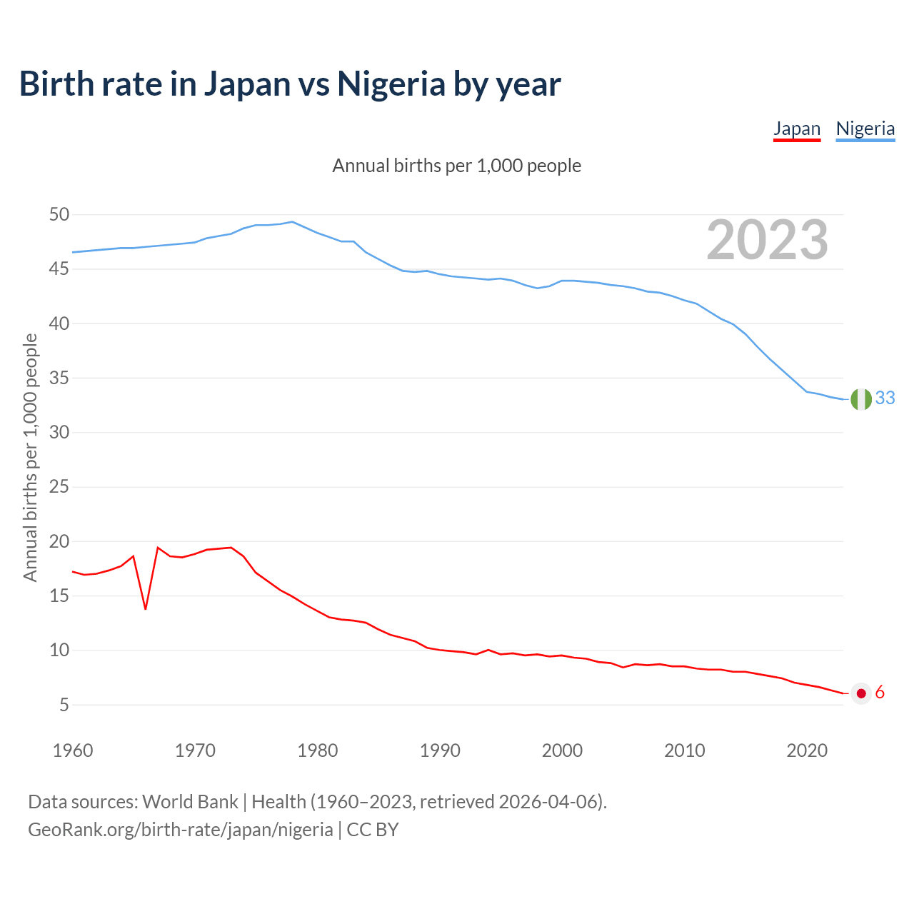 GeoRank.org/birth-rate/japan/nigeria | CC BY