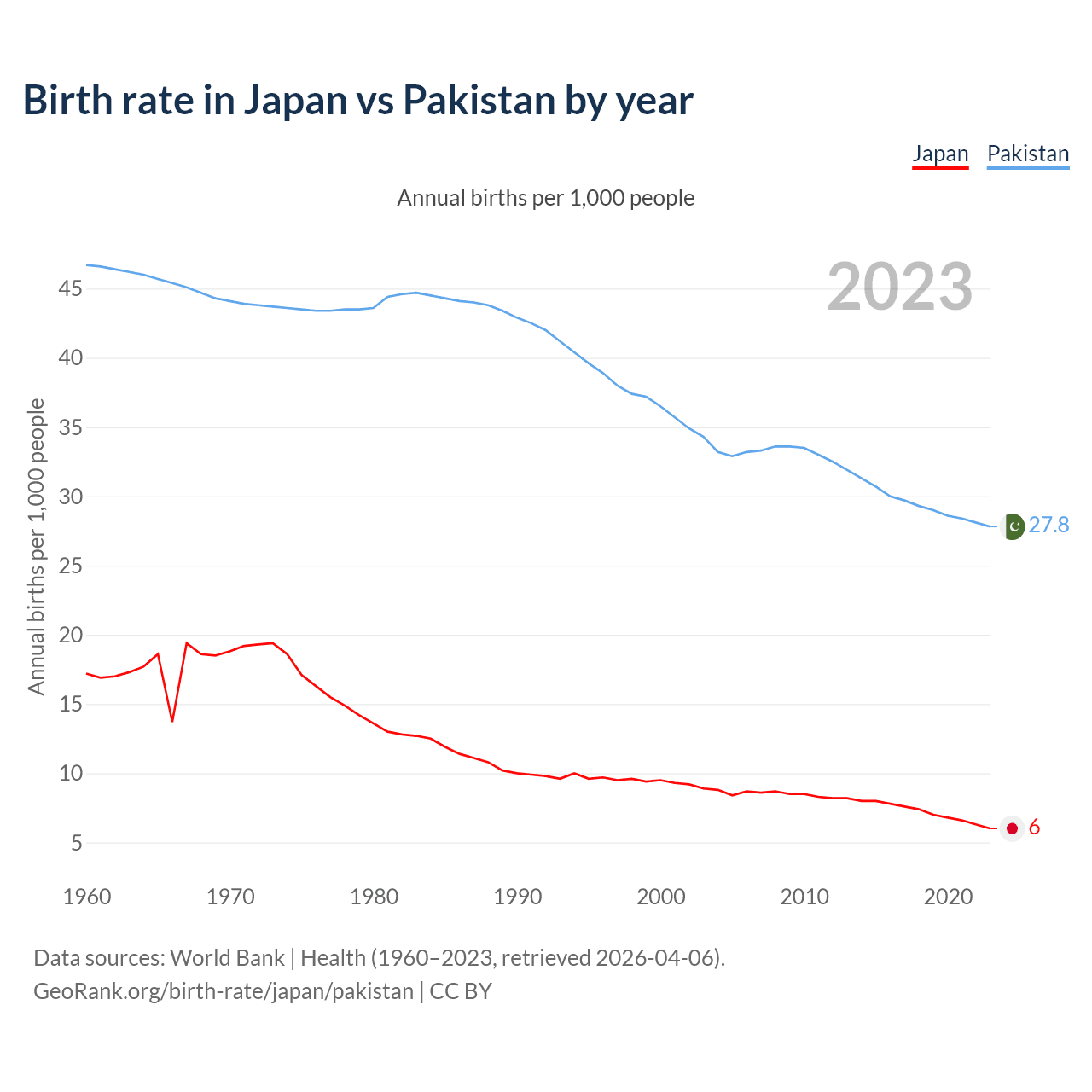 GeoRank.org/birth-rate/japan/pakistan | CC BY
