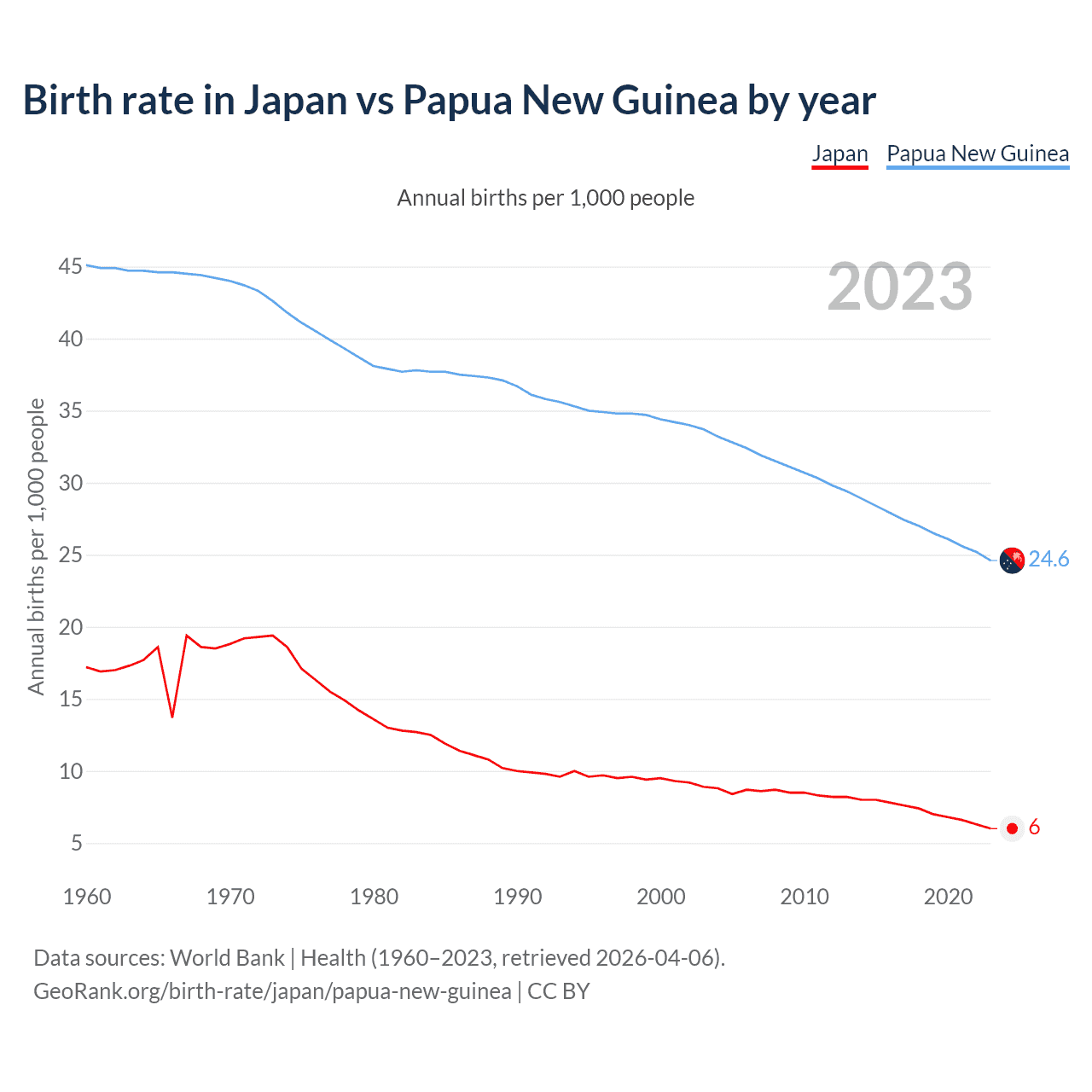 GeoRank.org/birth-rate/japan/papua-new-guinea | CC BY
