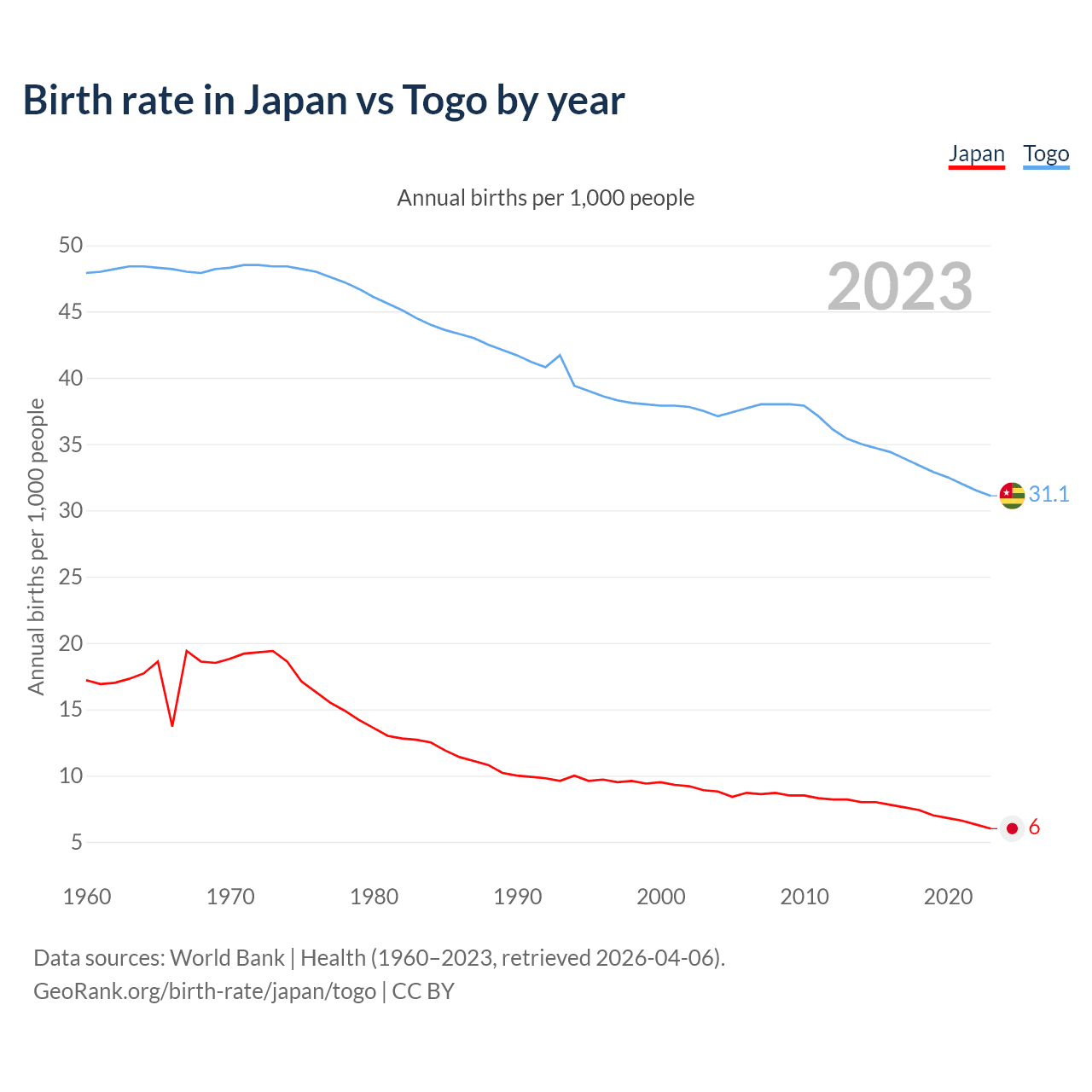 GeoRank.org/birth-rate/japan/togo | CC BY