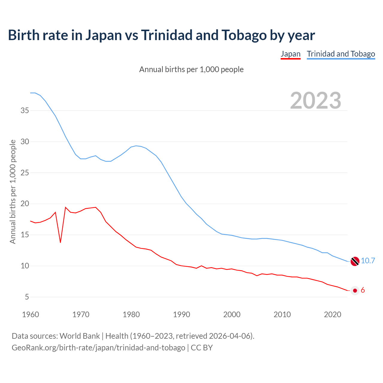 GeoRank.org/birth-rate/japan/trinidad-and-tobago | CC BY