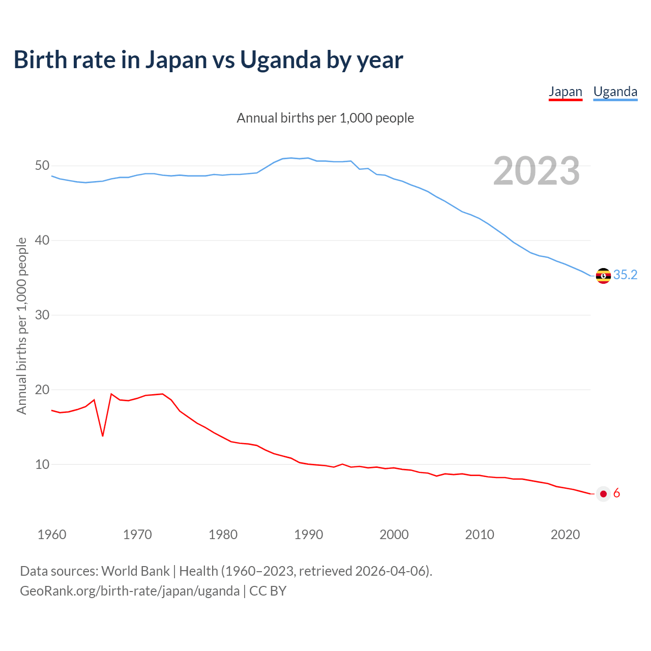 GeoRank.org/birth-rate/japan/uganda | CC BY