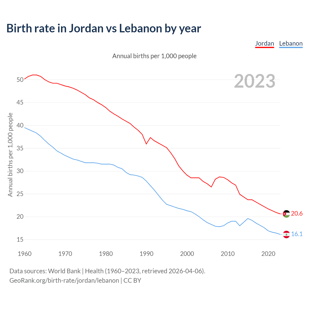 GeoRank.org/birth-rate/jordan/lebanon | CC BY