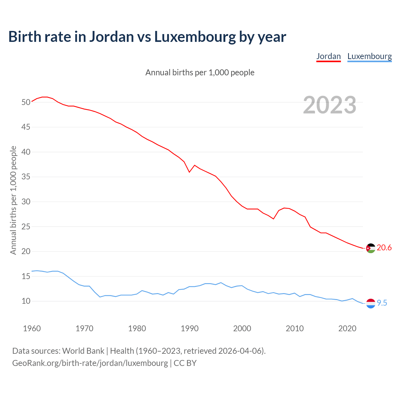GeoRank.org/birth-rate/jordan/luxembourg | CC BY