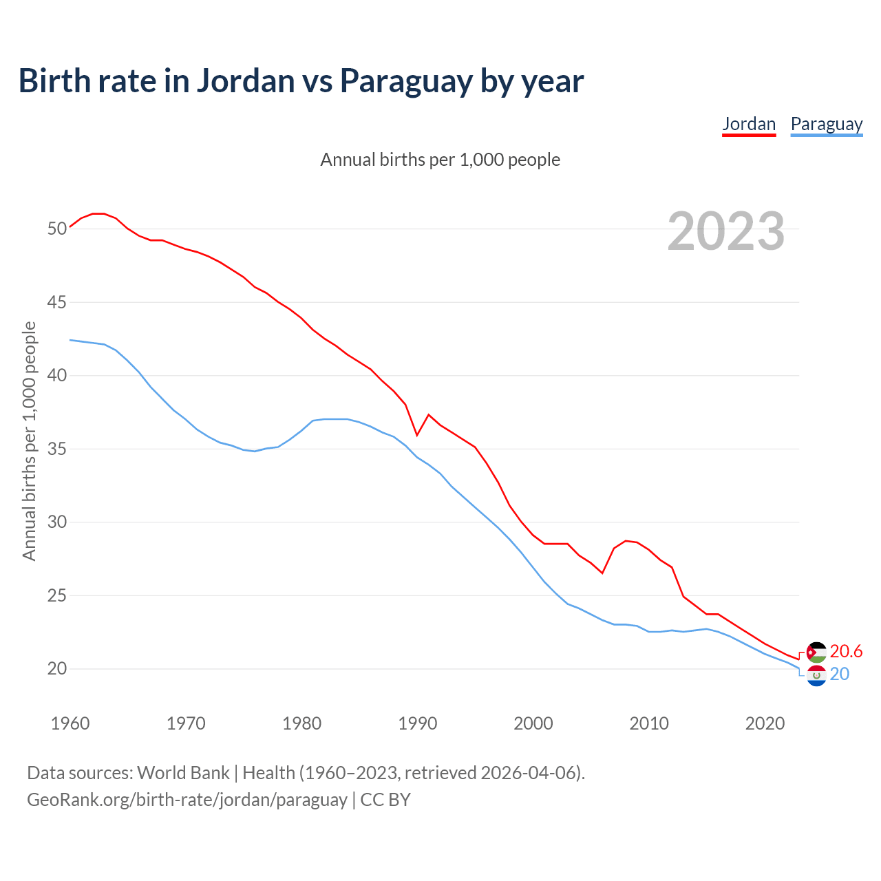 GeoRank.org/birth-rate/jordan/paraguay | CC BY