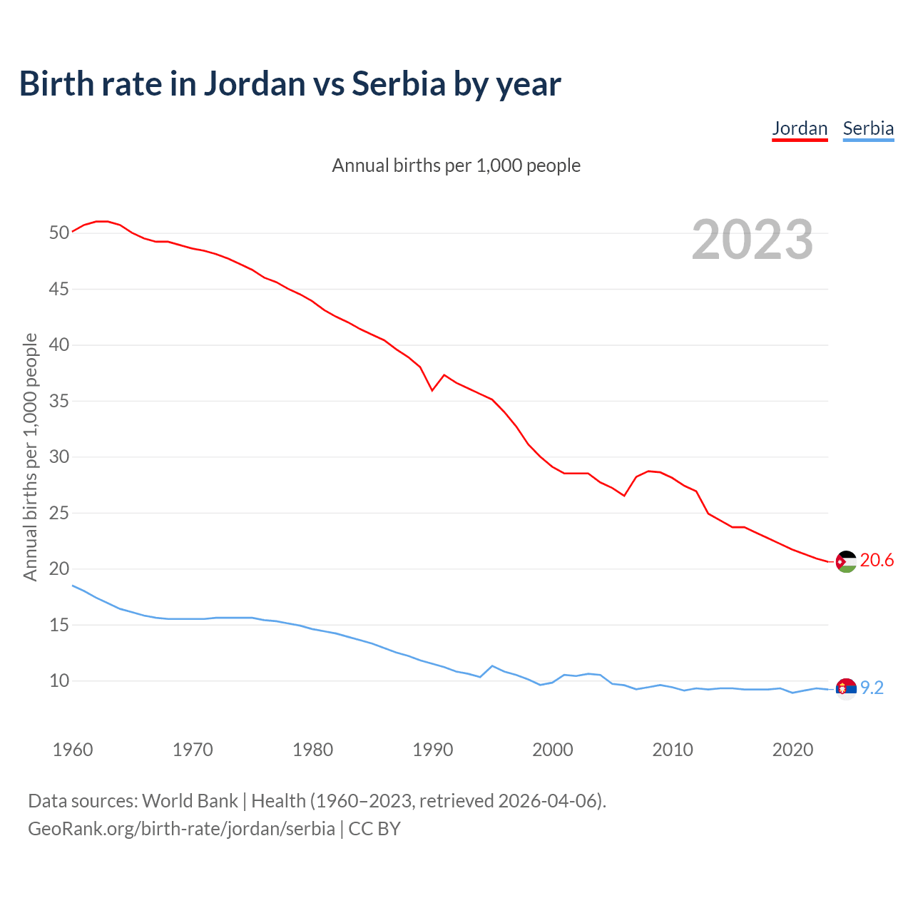 GeoRank.org/birth-rate/jordan/serbia | CC BY