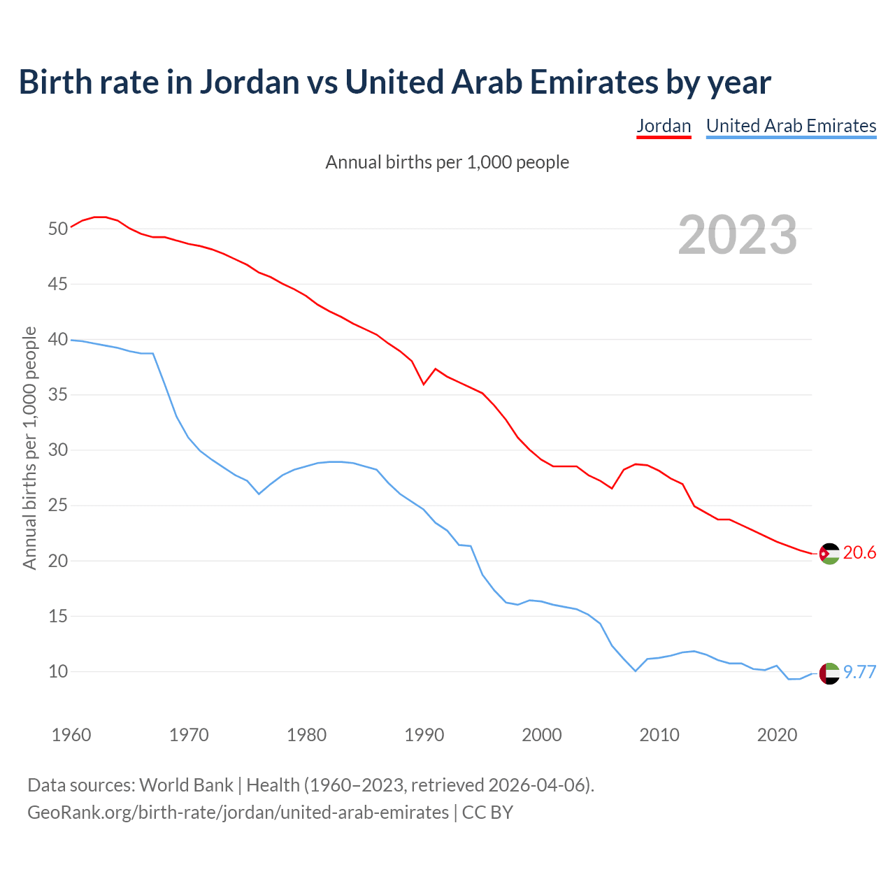 GeoRank.org/birth-rate/jordan/united-arab-emirates | CC BY