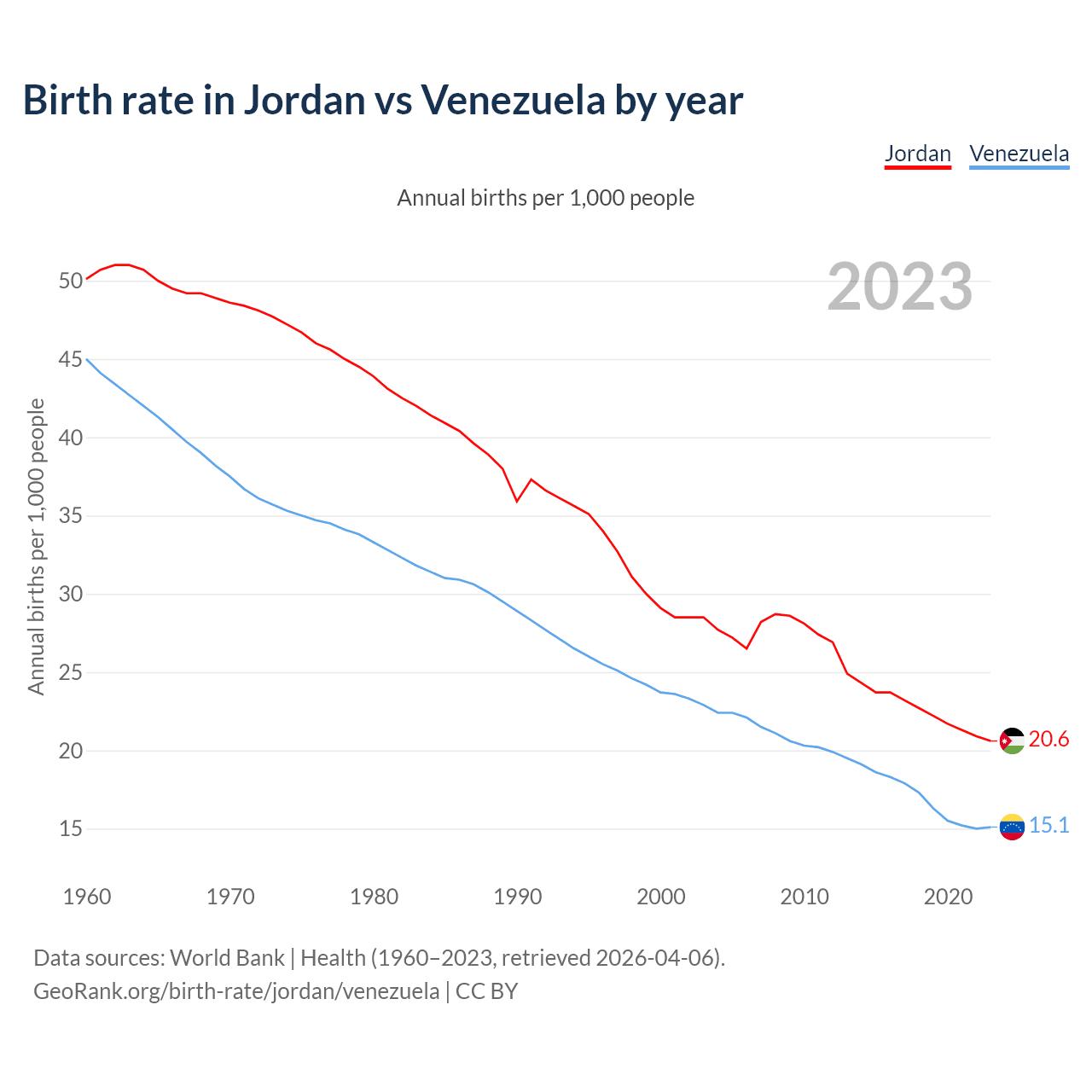 GeoRank.org/birth-rate/jordan/venezuela | CC BY
