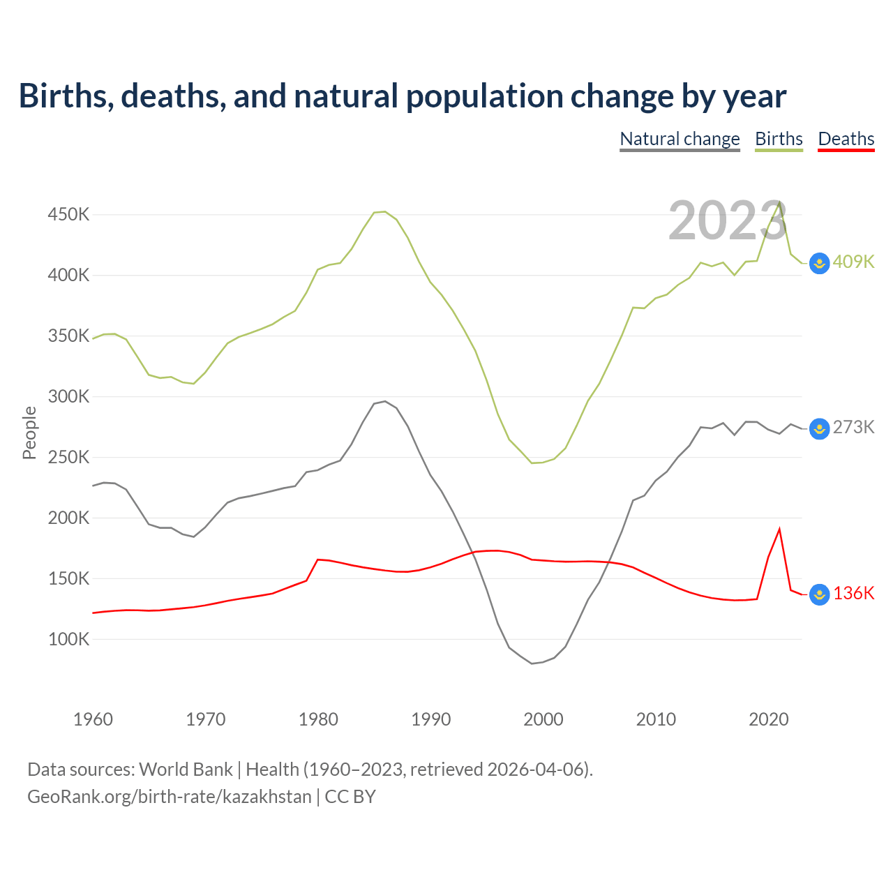 | Natural change | Births | Deaths | |