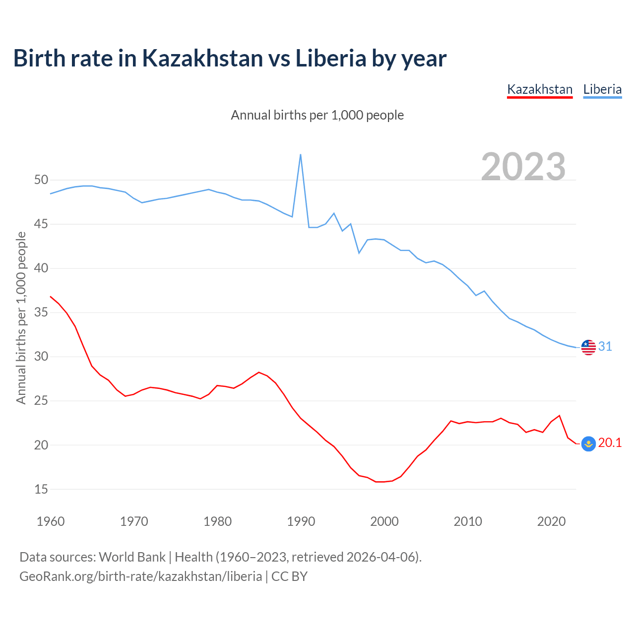 GeoRank.org/birth-rate/kazakhstan/liberia | CC BY