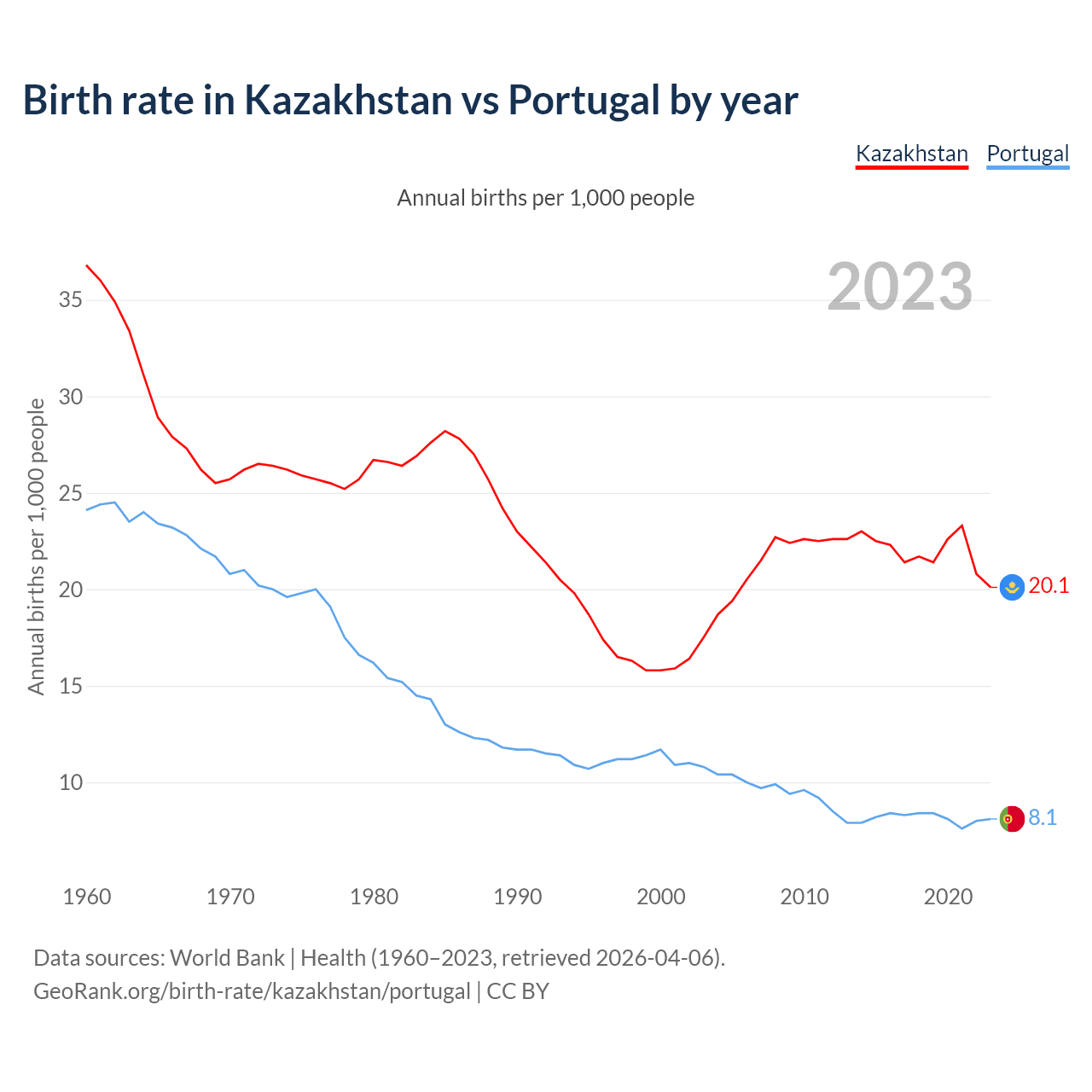 GeoRank.org/birth-rate/kazakhstan/portugal | CC BY
