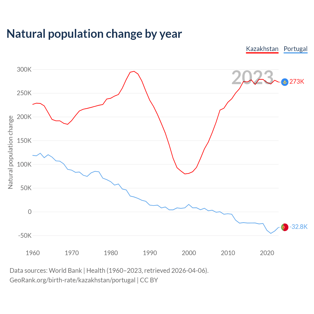 - Kazakhstan is ranked 76/196 by birth rate compared to 175/196 for Portugal.