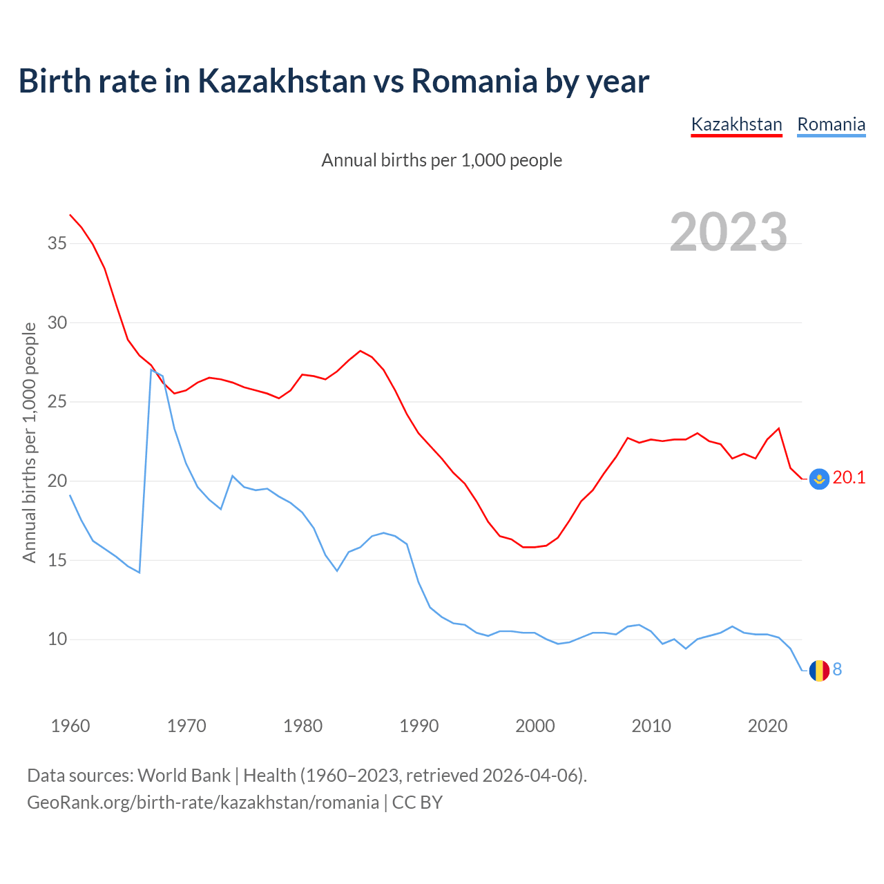 GeoRank.org/birth-rate/kazakhstan/romania | CC BY