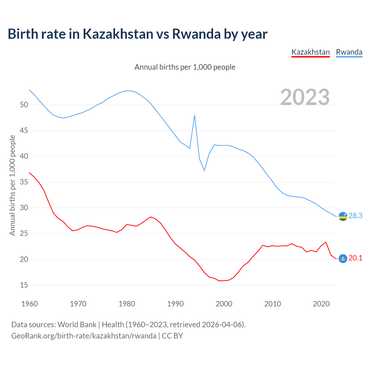 GeoRank.org/birth-rate/kazakhstan/rwanda | CC BY