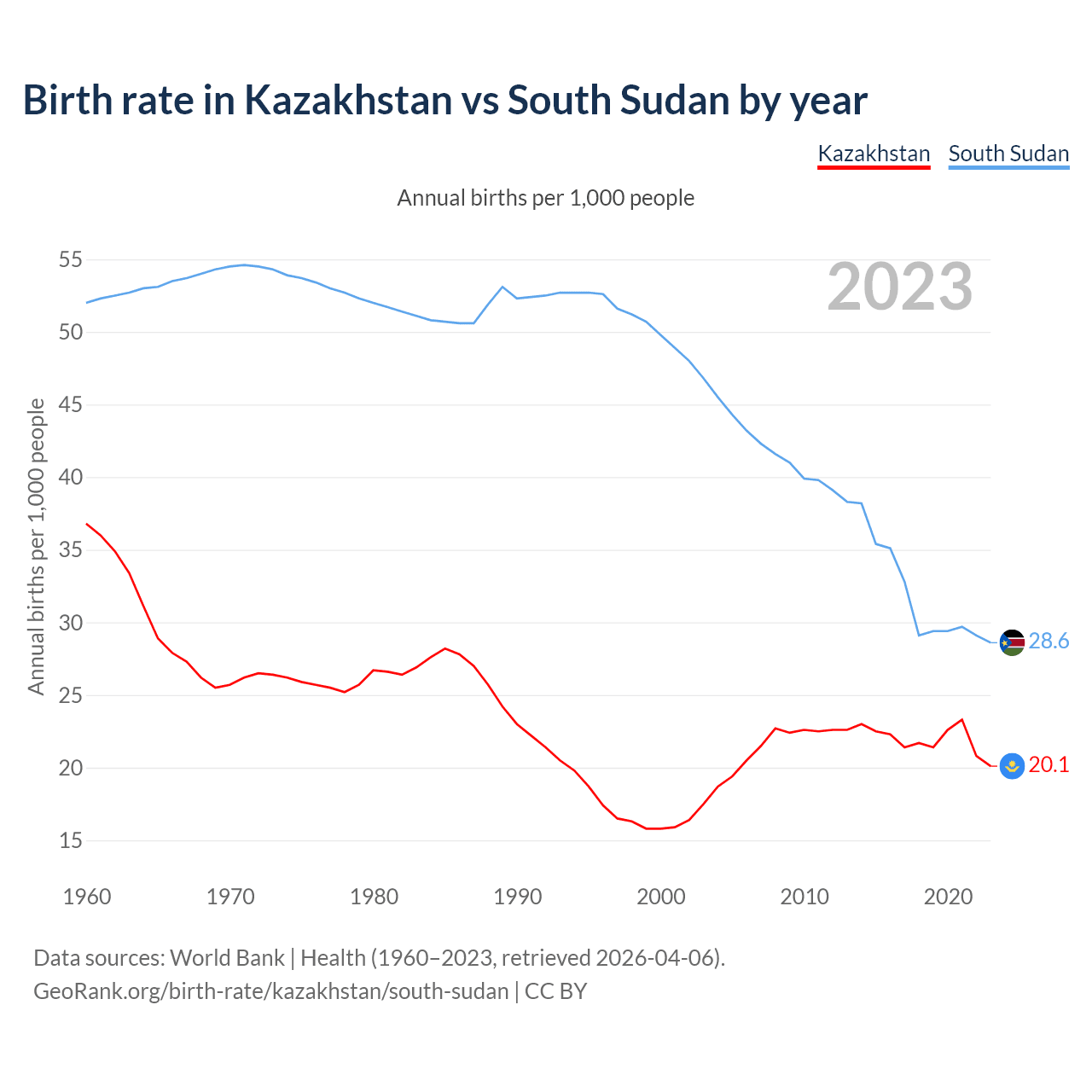 GeoRank.org/birth-rate/kazakhstan/south-sudan | CC BY