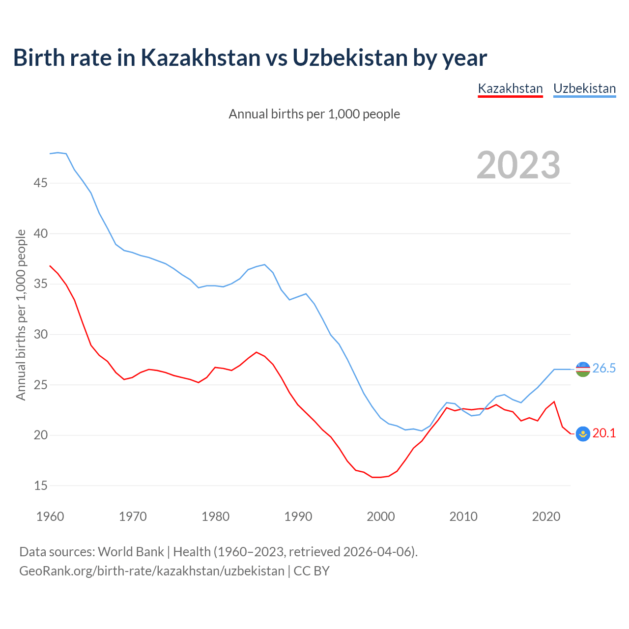 GeoRank.org/birth-rate/kazakhstan/uzbekistan | CC BY