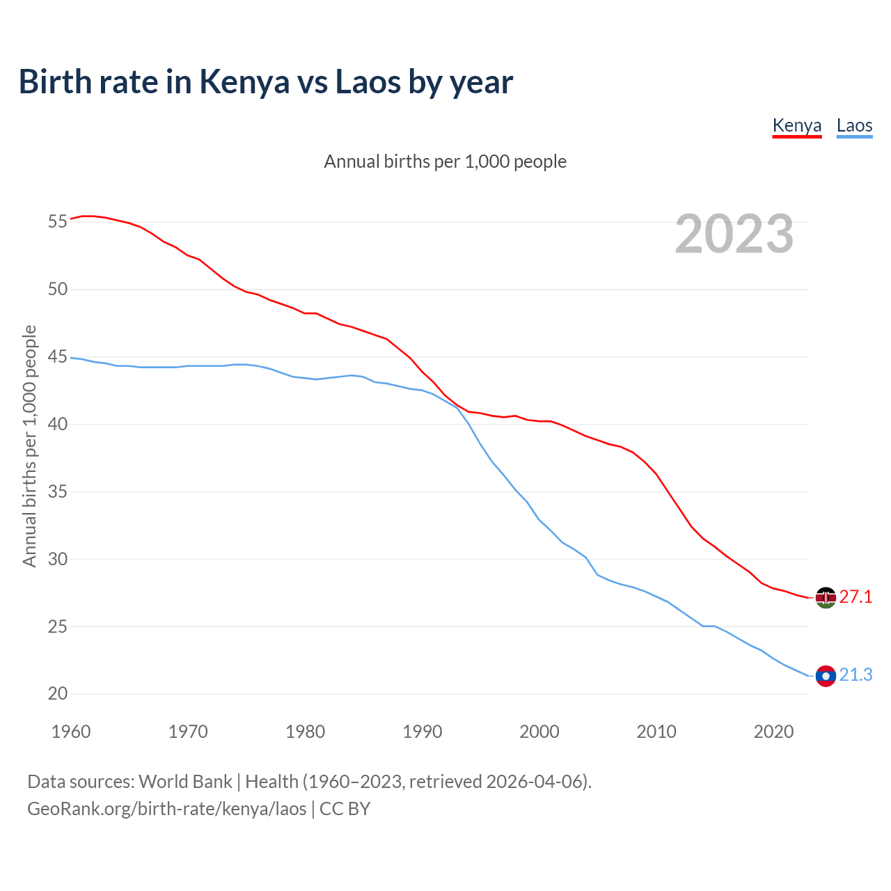 GeoRank.org/birth-rate/kenya/laos | CC BY