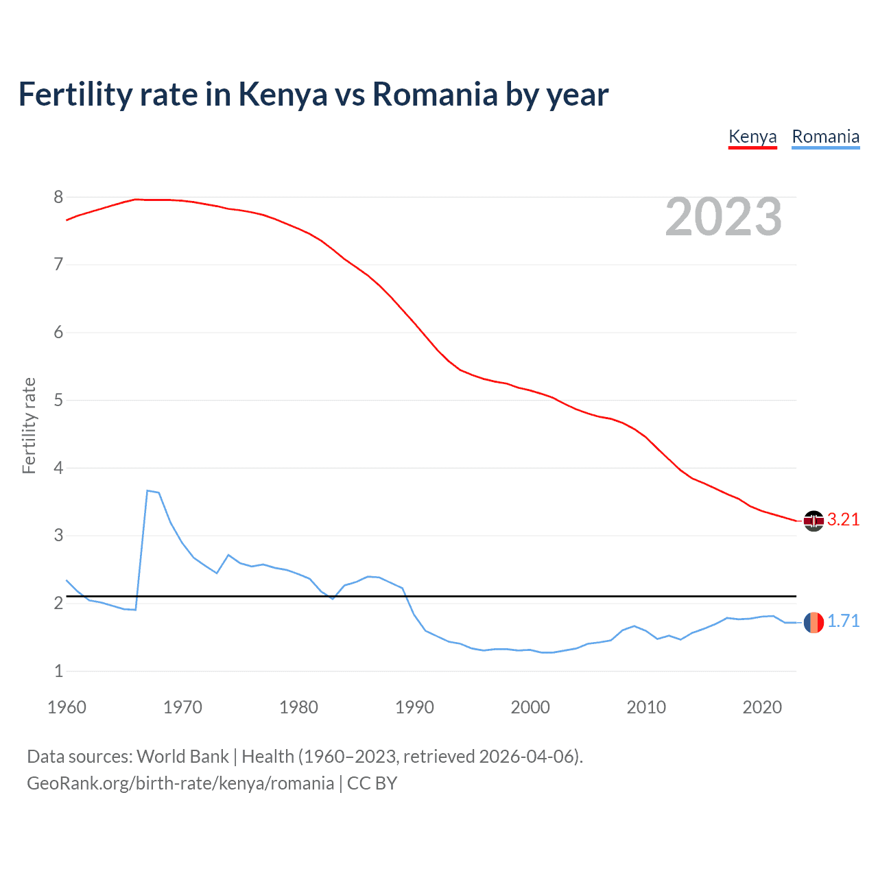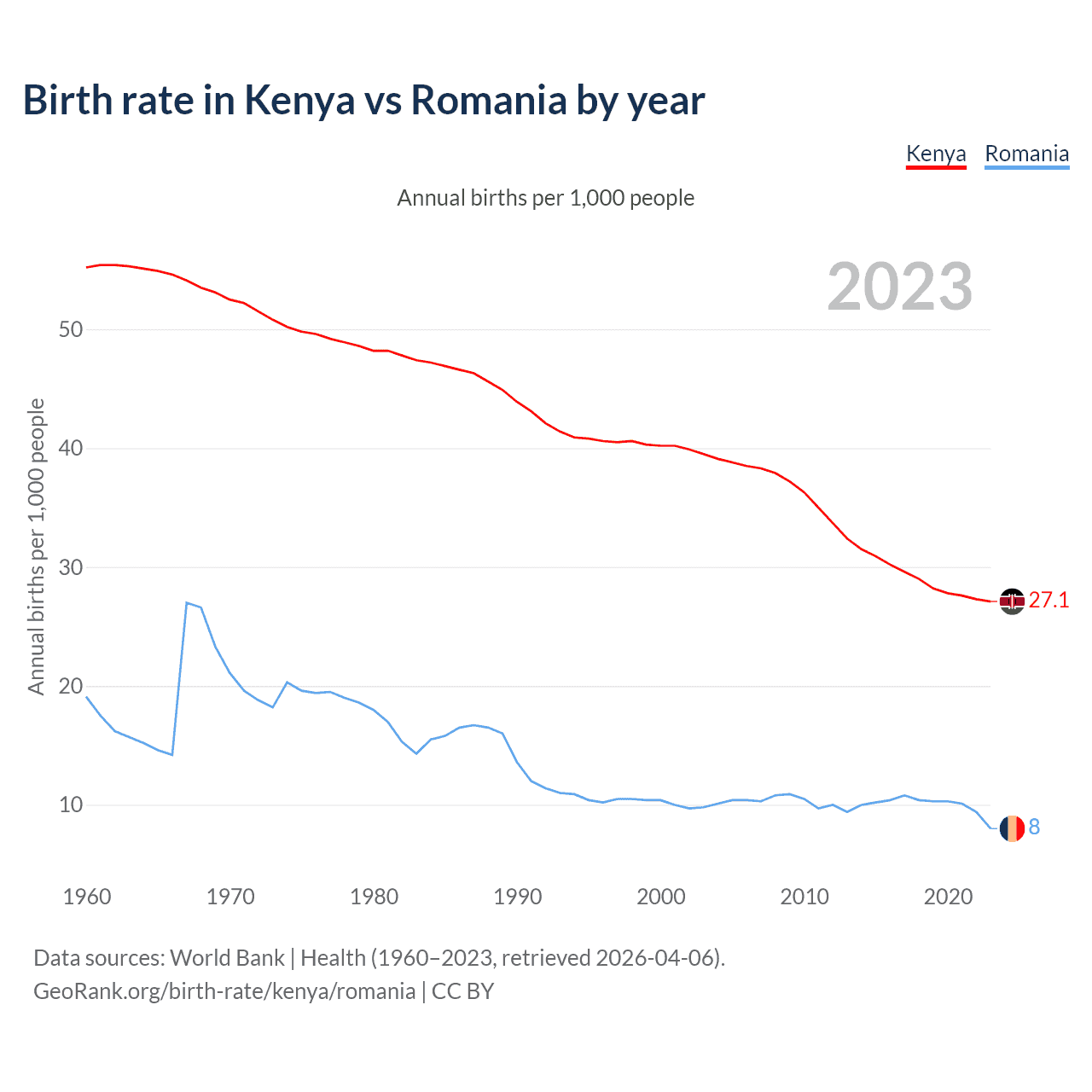 GeoRank.org/birth-rate/kenya/romania | CC BY