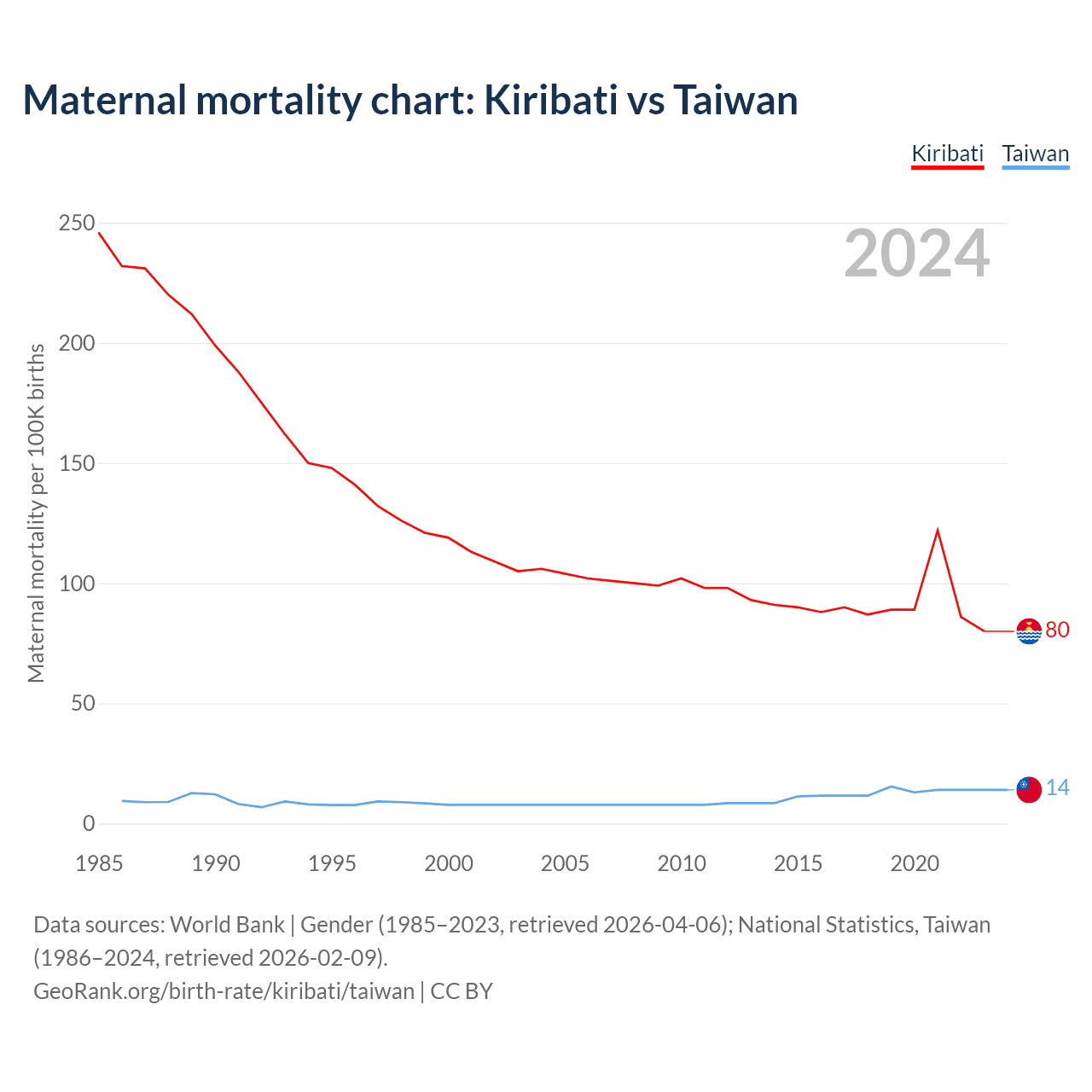 Maternal mortality chart: Kiribati vs Taiwan