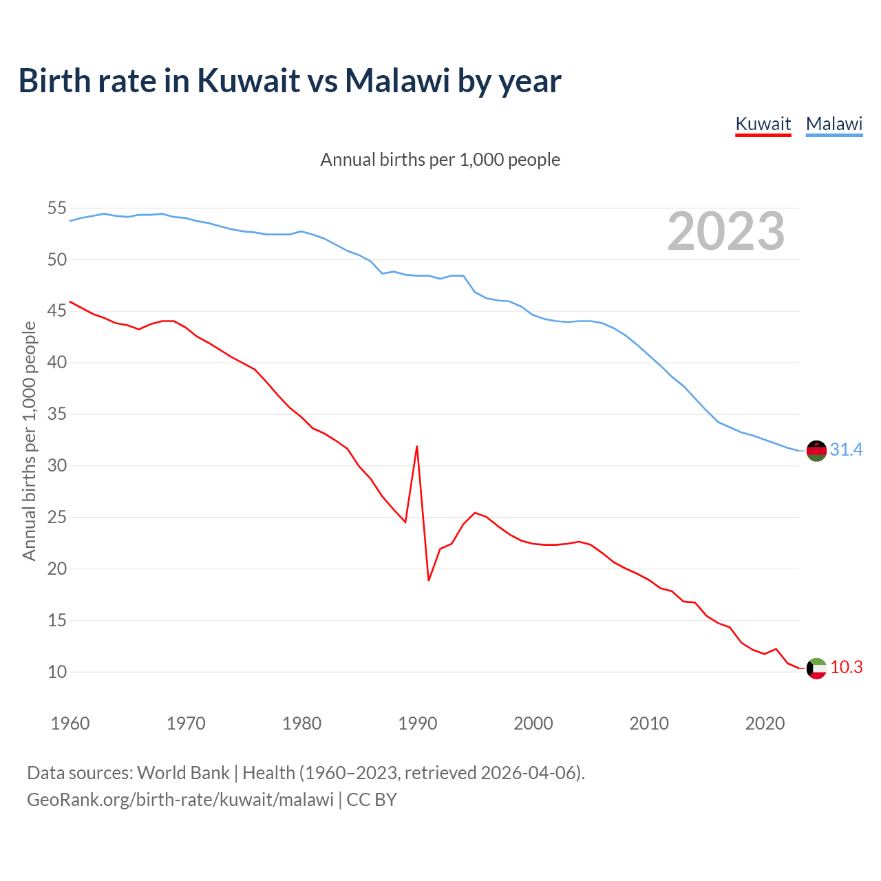 GeoRank.org/birth-rate/kuwait/malawi | CC BY