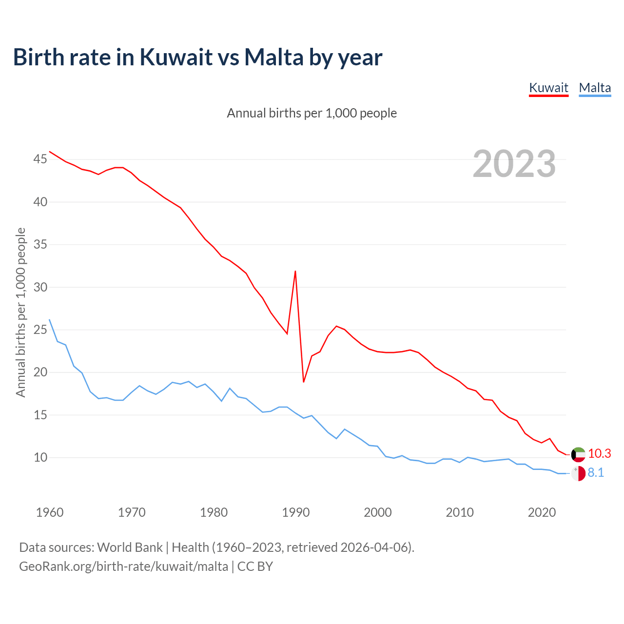 GeoRank.org/birth-rate/kuwait/malta | CC BY