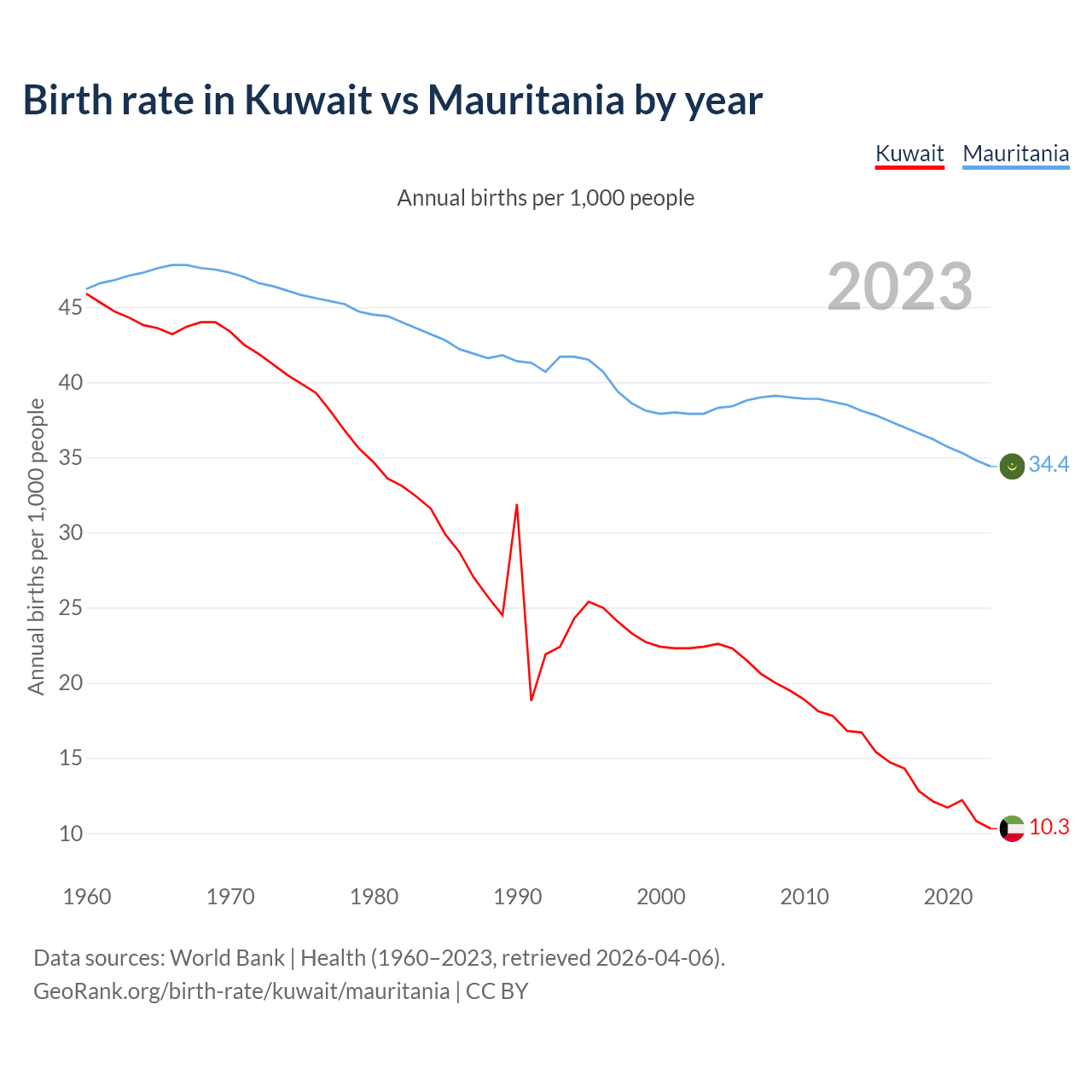 GeoRank.org/birth-rate/kuwait/mauritania | CC BY