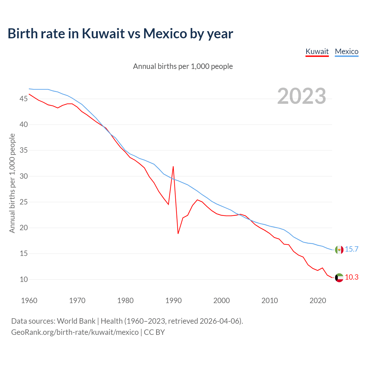 - Kuwait is ranked 141/196 by birth rate compared to 100/196 for Mexico.