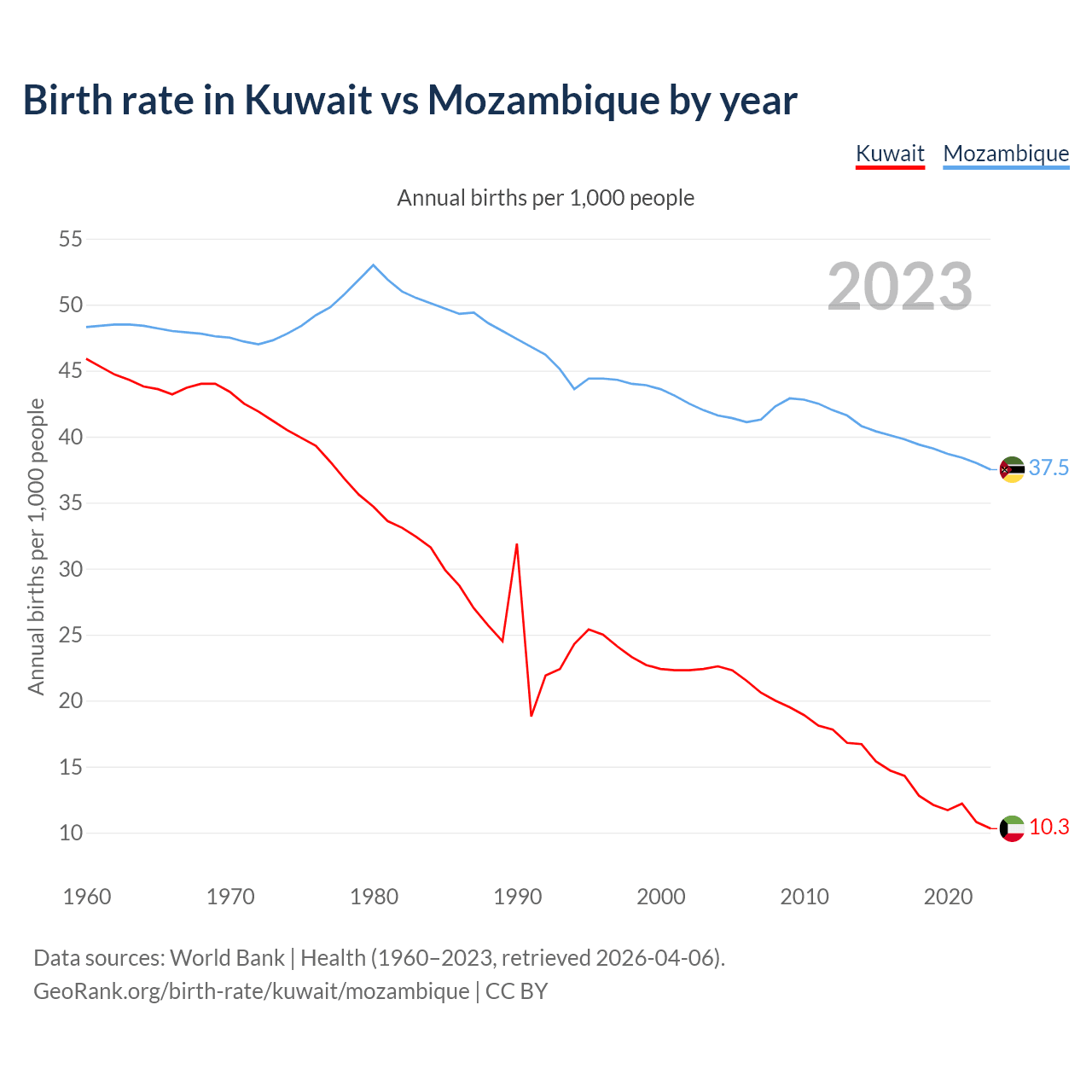 GeoRank.org/birth-rate/kuwait/mozambique | CC BY