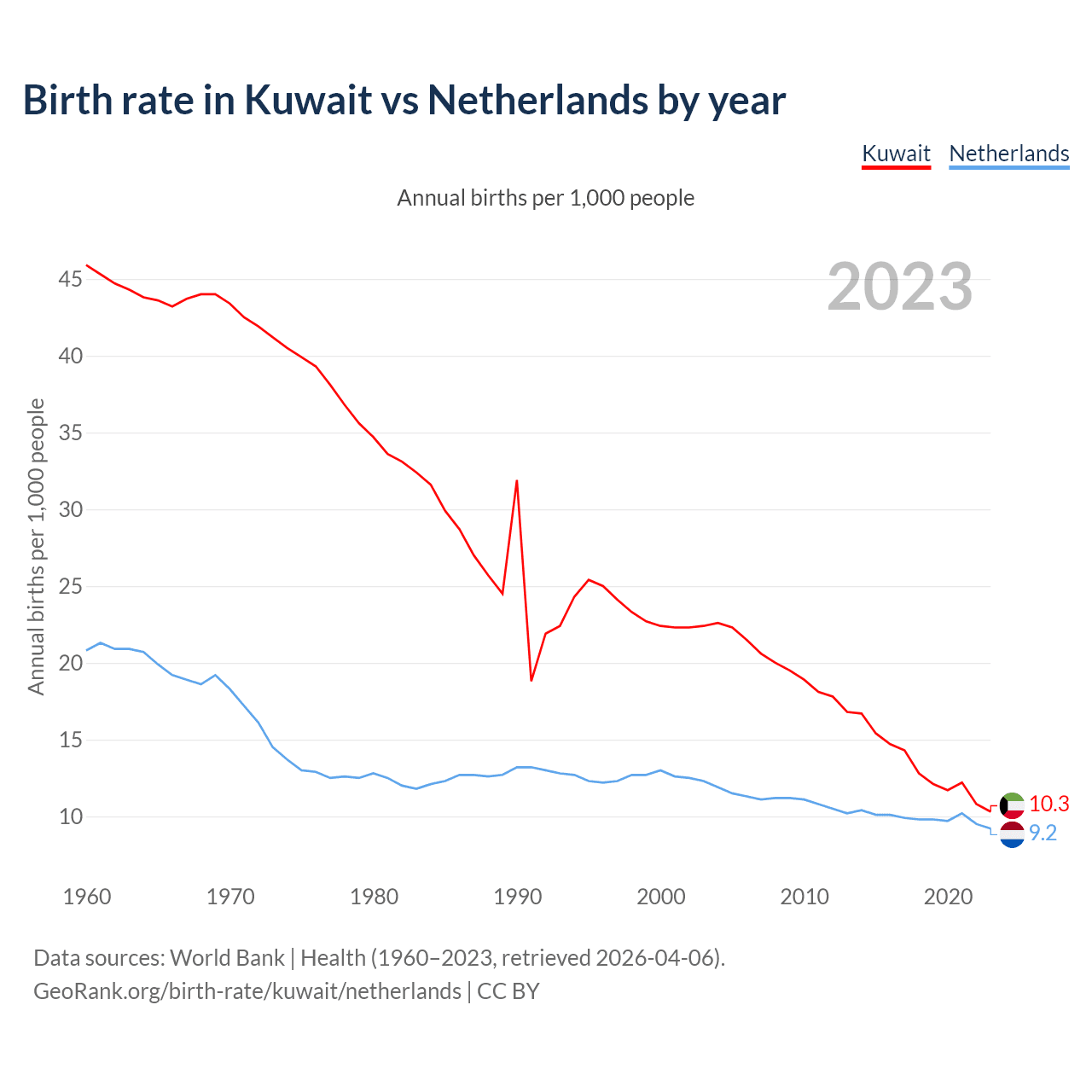 GeoRank.org/birth-rate/kuwait/netherlands | CC BY