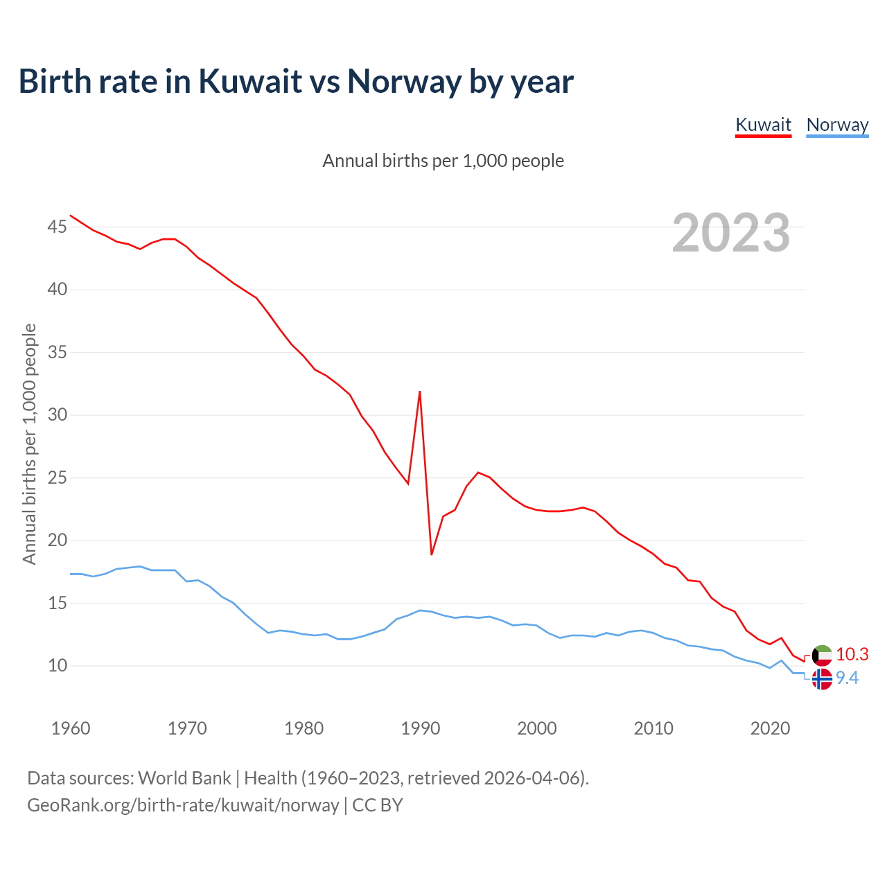 GeoRank.org/birth-rate/kuwait/norway | CC BY
