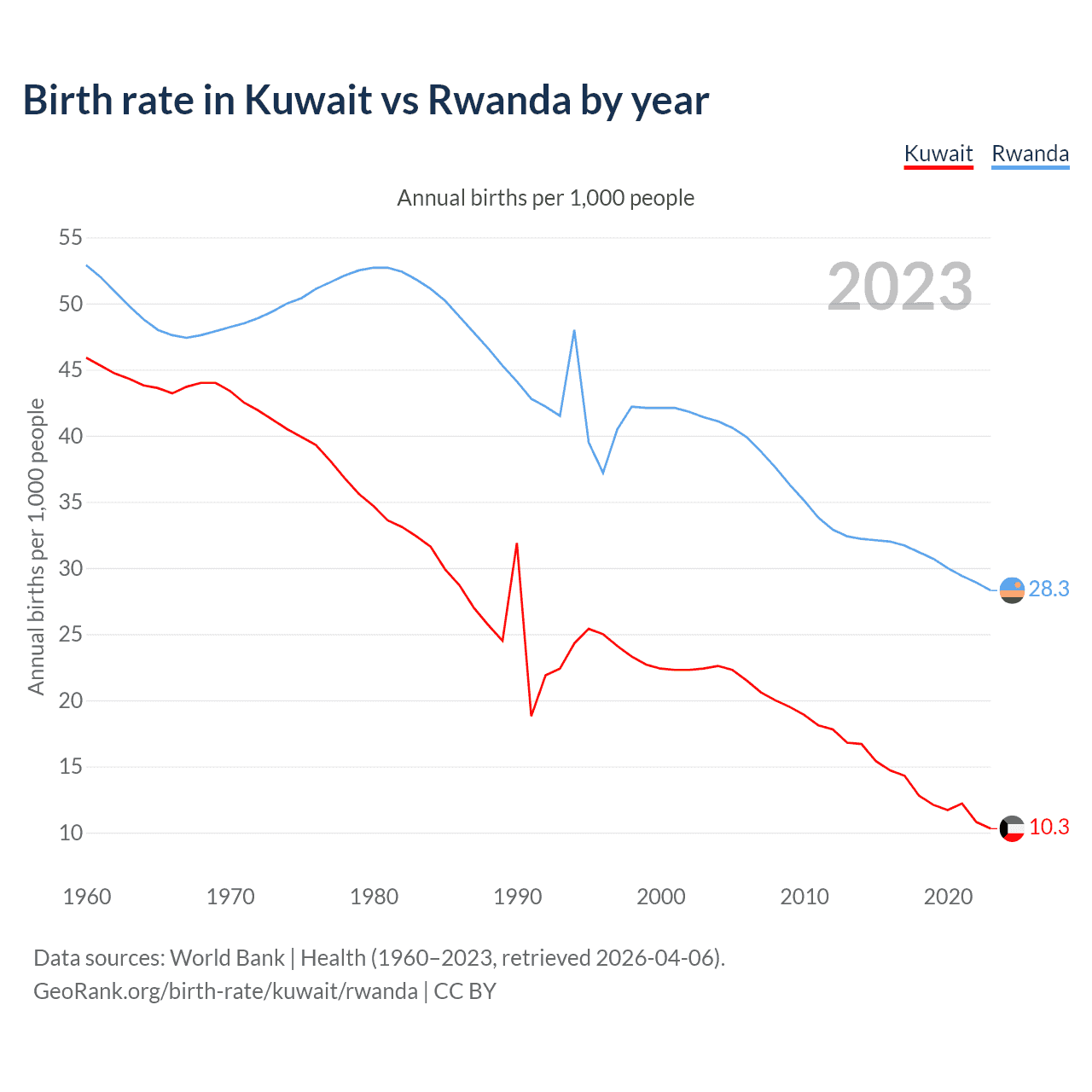 GeoRank.org/birth-rate/kuwait/rwanda | CC BY