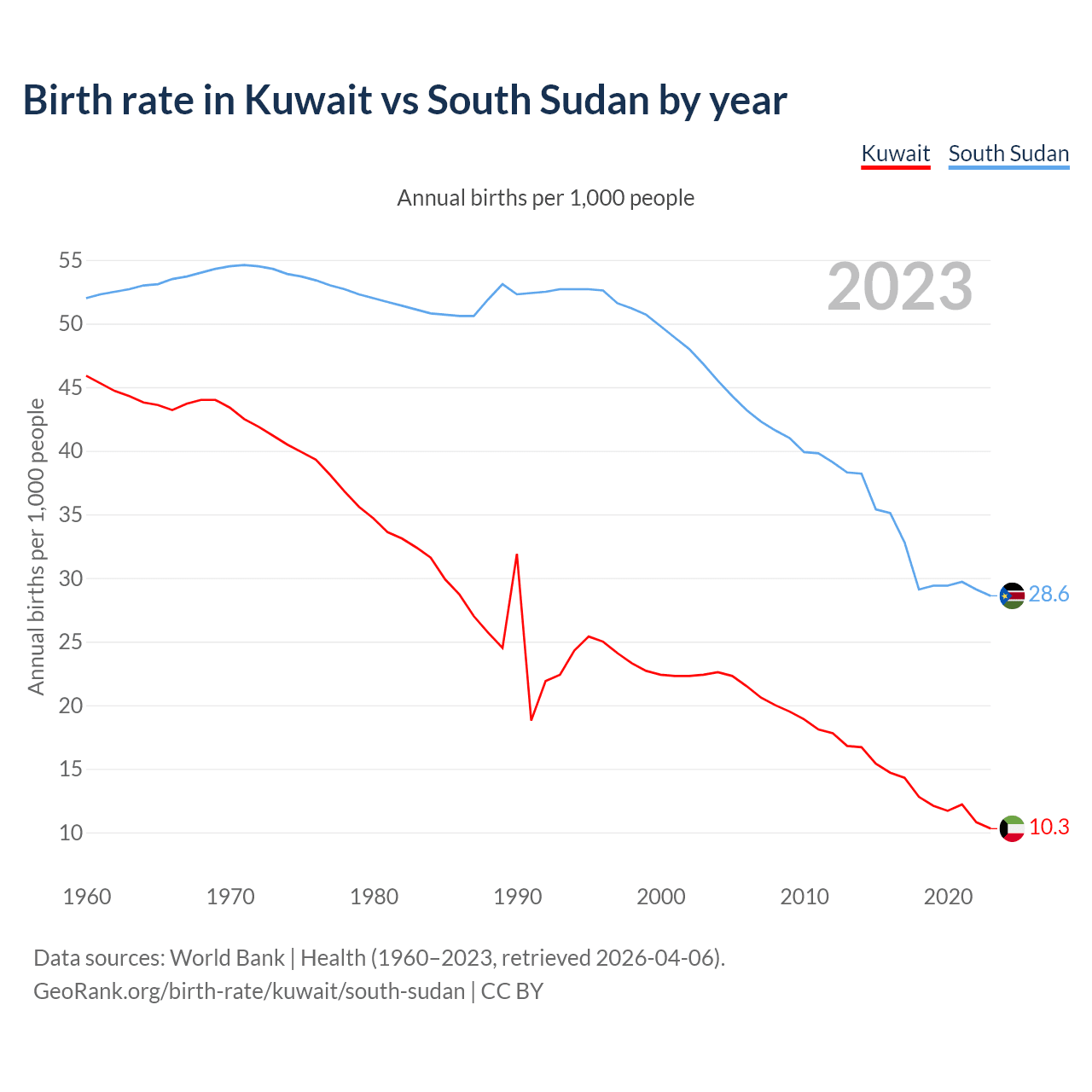 GeoRank.org/birth-rate/kuwait/south-sudan | CC BY