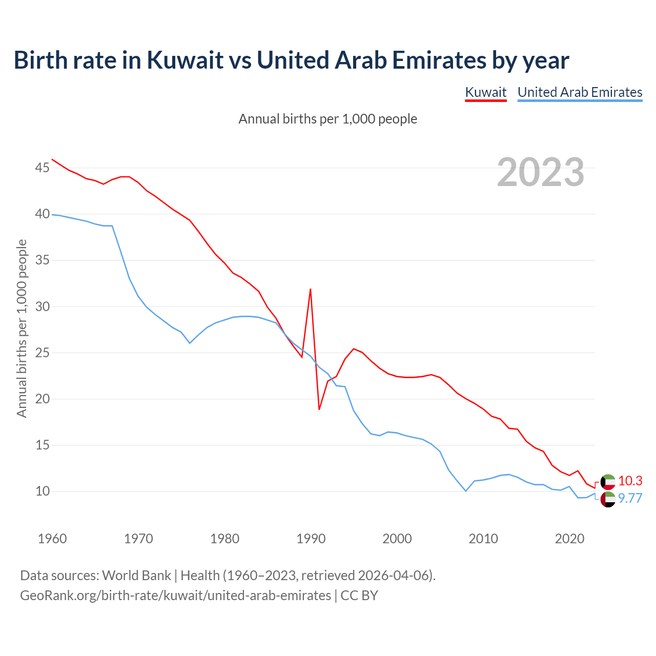 GeoRank.org/birth-rate/kuwait/united-arab-emirates | CC BY